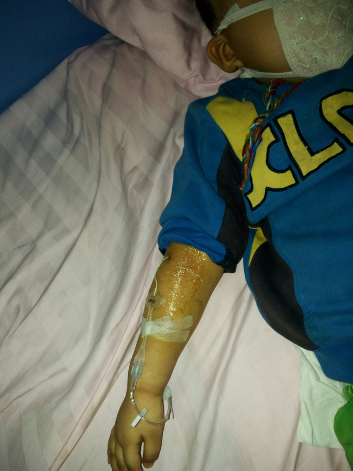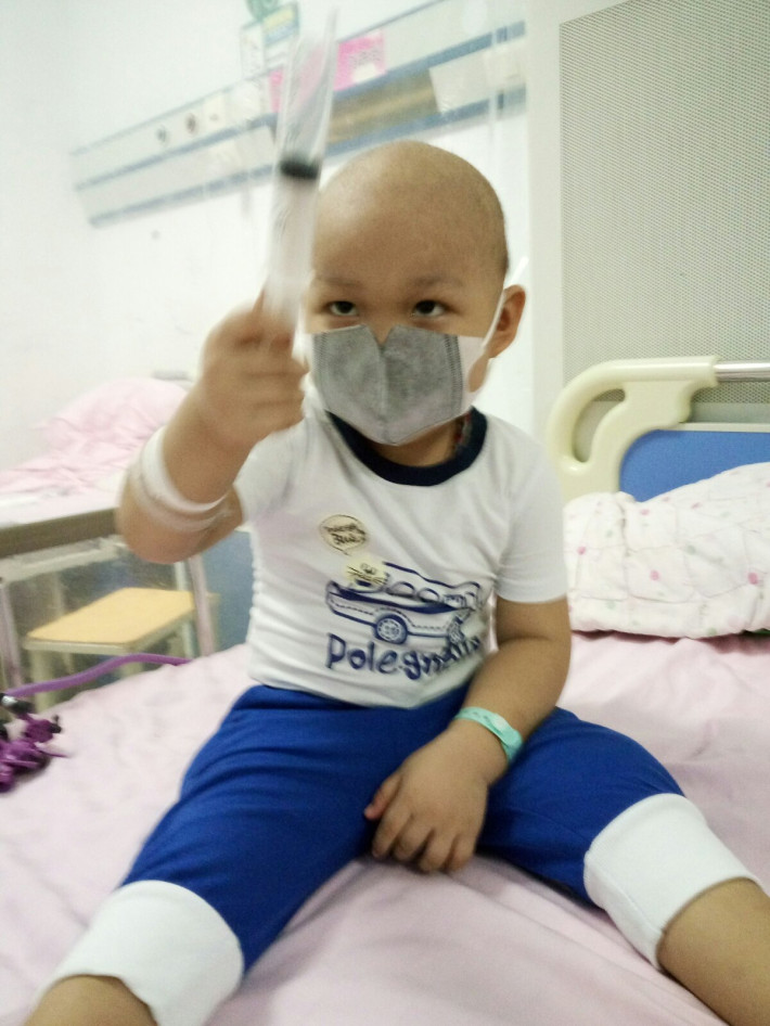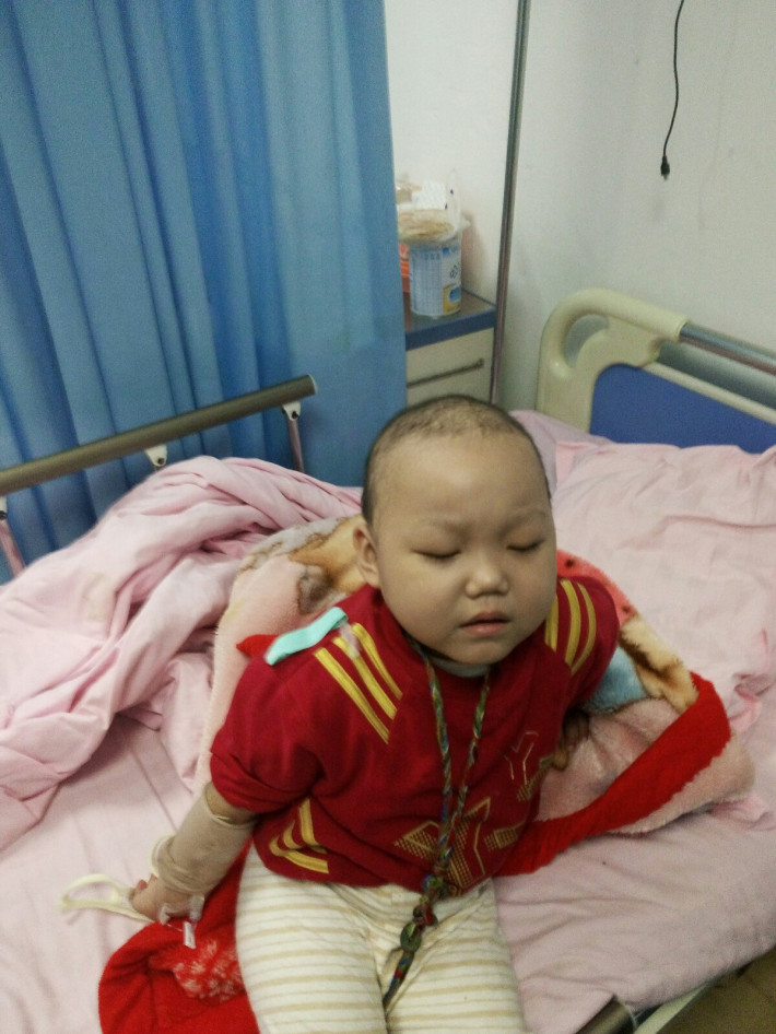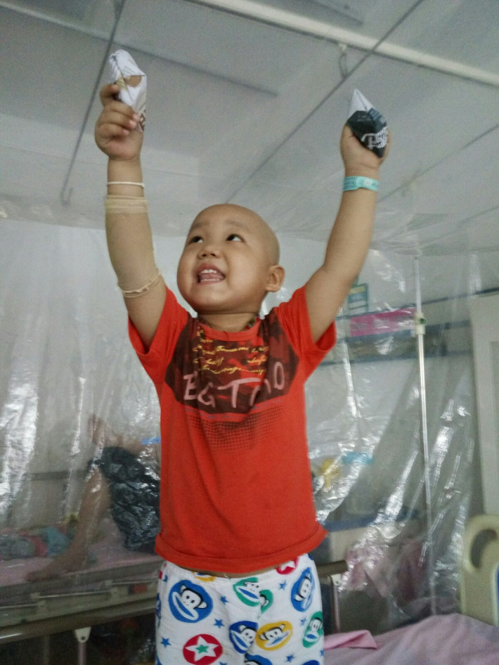 在治療過程中卻充滿了痛苦和絕望。除了化療給孩子帶來吃什么吐什么,最讓孩子受不了的是做骨穿和腰穿。昕暢每天都要抽血化驗,兩個星期要做一次骨穿和腰穿非常受罪。平時掛水打針昕暢已經(jīng)習以為常,掛水上化療藥物基本上一天掛十幾個小時,有的時候掛24小時連續(xù)掛四天四夜,但是做骨穿腰穿注射一些特殊藥物的時候,他還是忍不住哭上一會而且要平躺6個小時以上。昕暢右胳膊上有一個植在血管的輸液管,這根輸液管直達心臟,日日夜夜不能取下來,孩子所遭受的痛苦可想而知。