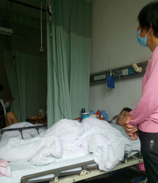 當秀峰知道病情后,就說我沒事,能不能救都沒事,你怎么辦,孩子怎么辦!我的眼淚就在眼眶里打轉,不能在他面前哭,說你肯定能治好的,到時候咱們一家人好好過,就算再苦也要把孩子生出來,把他帶大!他是多么喜歡小孩!所幸的是得知病情以后,秀峰工作的中天二建公司,他的老板與公司同事,以前的同學,親戚朋友紛紛伸出援助之手送來了精神上,經(jīng)濟上的幫助,讓我們有信心與能力去治療。