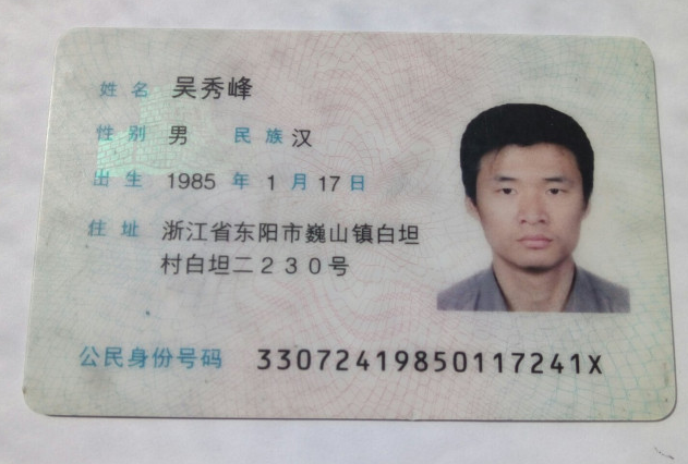 浙江省東陽市巍山支行 開戶人:吳秀峰