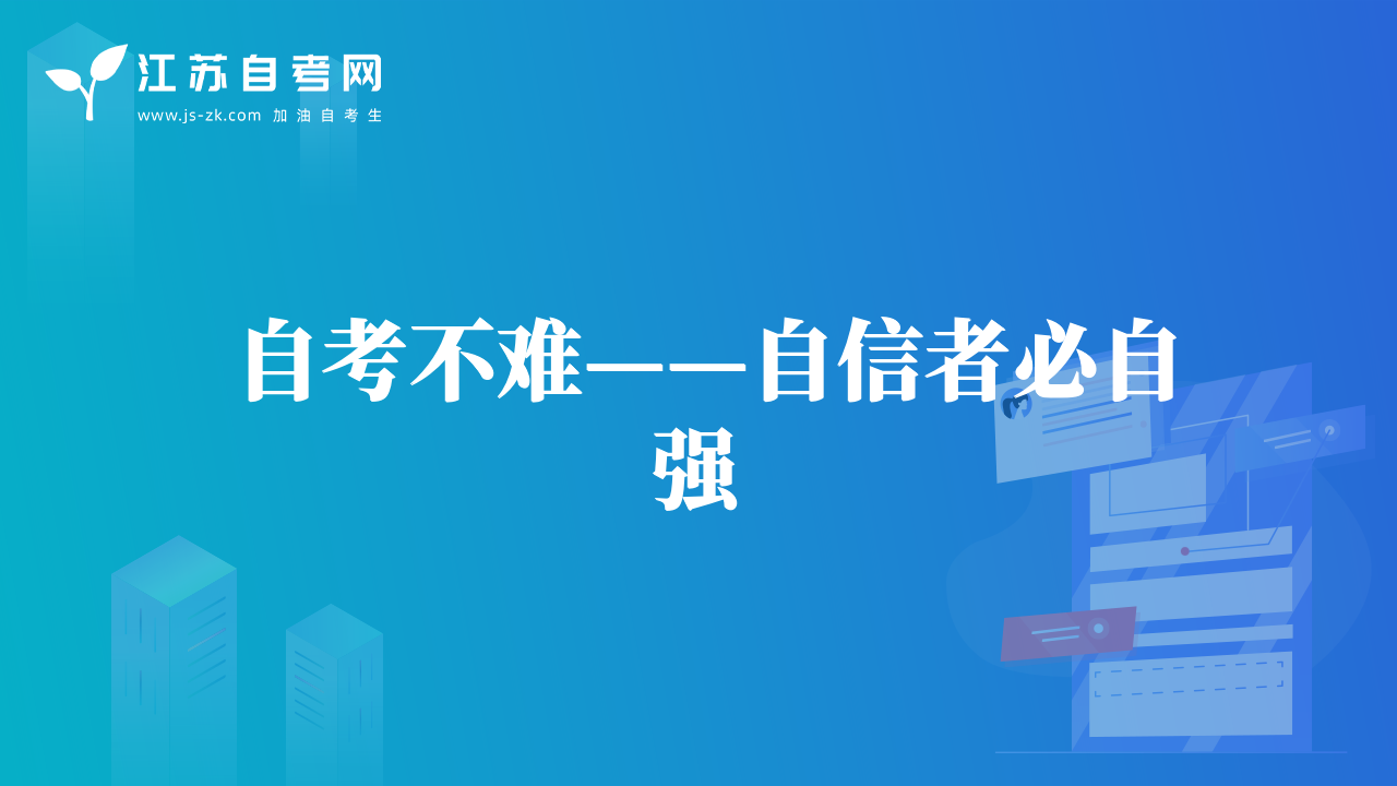 以上是關(guān)于自考不難——自信者必自強(qiáng)已公布的相關(guān)信息,請(qǐng)自考生們認(rèn)真查看,如果你想獲取最新的江蘇自考新聞或者江蘇自考問(wèn)題答疑,可以掃描江蘇自考網(wǎng)公眾號(hào)二維碼,我們會(huì)最第一時(shí)間內(nèi)為你解答。