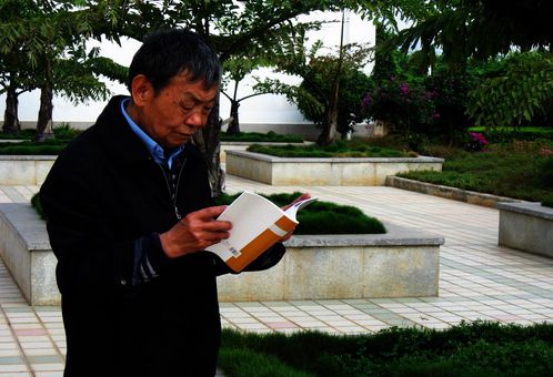 考試前顧老在蒙自三中的花園里復(fù)習(xí)