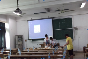 自考網(wǎng)部分工作人員布置會(huì)場(chǎng)