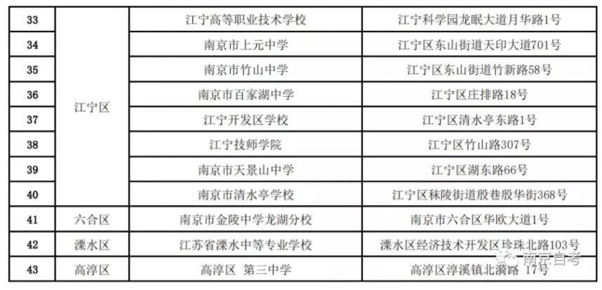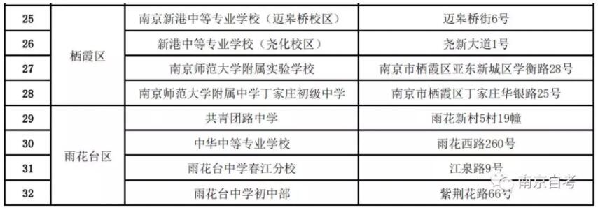 南京市2019年10月自學(xué)考試考點(diǎn)地址