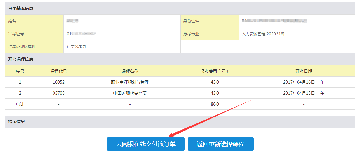 使用網(wǎng)銀進(jìn)行繳費(fèi),支付成功代表選課成功。