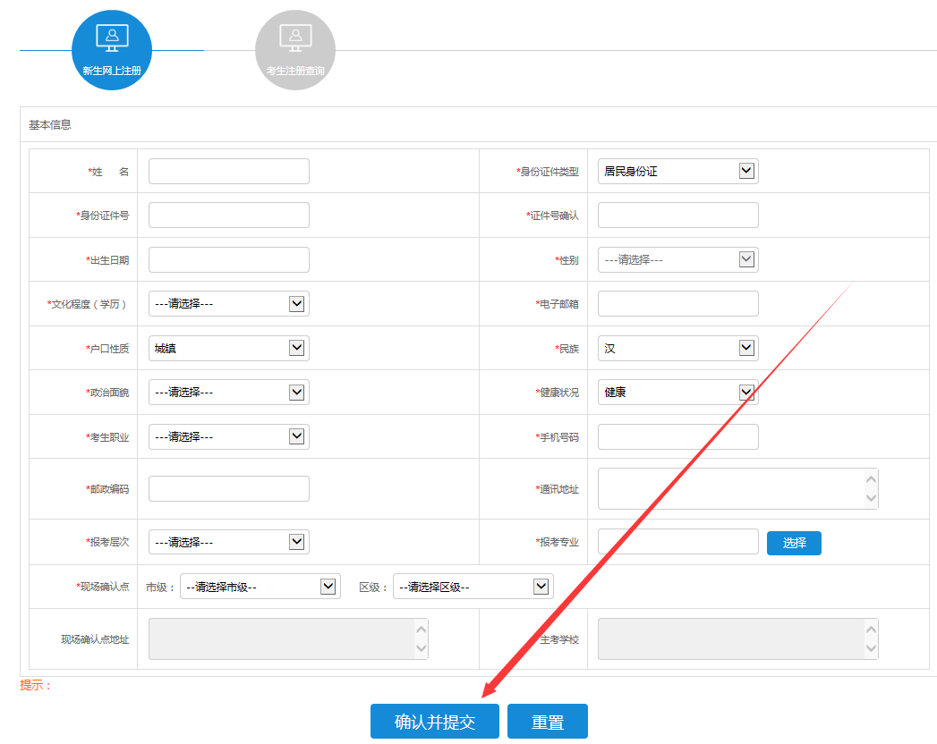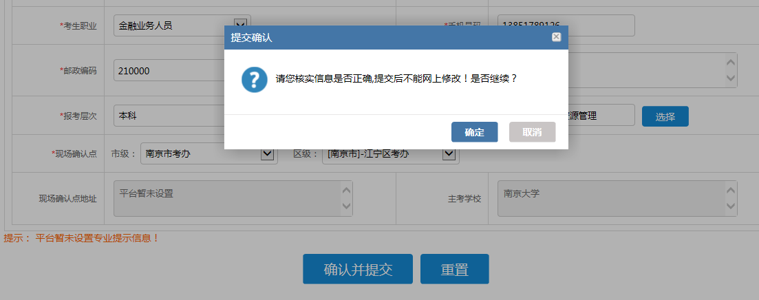 這里是填寫考生個(gè)人信息,注意:填寫完畢后就無(wú)法修改了。