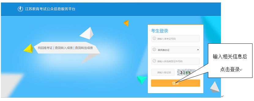 考生在自學(xué)考試轉(zhuǎn)考登錄主頁(yè)面(如圖1-1),點(diǎn)擊登錄后完成登錄。
