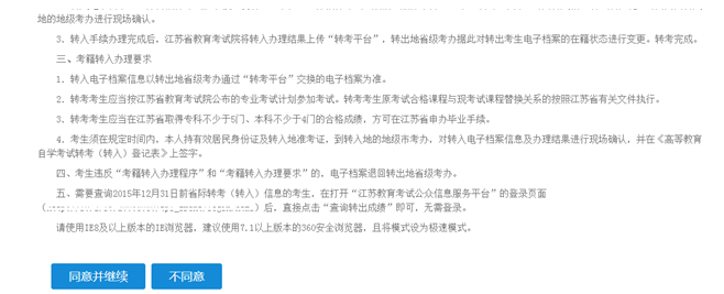 1、系統(tǒng)顯示轉(zhuǎn)出須知(圖2-1),強(qiáng)制閱讀10秒后,考生點(diǎn)擊同意并繼續(xù),進(jìn)入轉(zhuǎn)出申請(qǐng)頁(yè)面。點(diǎn)擊不同意,系統(tǒng)提示是否退出系統(tǒng)(圖2-2),點(diǎn)擊確定返回到登錄頁(yè)面,點(diǎn)擊取消返回到轉(zhuǎn)出須知頁(yè)面。(只有登錄的準(zhǔn)考證本批次沒(méi)有進(jìn)行過(guò)轉(zhuǎn)出申請(qǐng),才會(huì)顯示轉(zhuǎn)出須知)