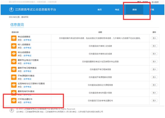 2、打開http://sdata.jseea.cn,或登錄江蘇教育考試公眾信息平臺,點(diǎn)擊“查詢”后,再點(diǎn)擊“打印考試通知書”。
