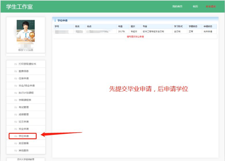 以上材料領(lǐng)取畢業(yè)證書及畢業(yè)生登記表原件后提交所在學(xué)院,同時(shí)填寫“學(xué)士學(xué)位申請(qǐng)表”并帶好兩張2寸藍(lán)底免冠照。