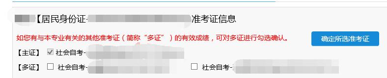 考生有本省多張準考證且其中成績在本次畢業(yè)中需使用,則勾選相應準考證號,并點擊【確定所選準考證】。(如勾選的多證沒有電子準考證照片,按要求完成線上身份驗證上后方可使用)。