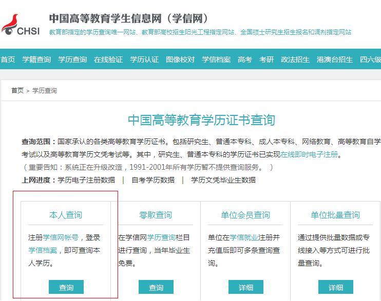 2、在學(xué)歷認(rèn)證欄目中,選擇本人查詢
