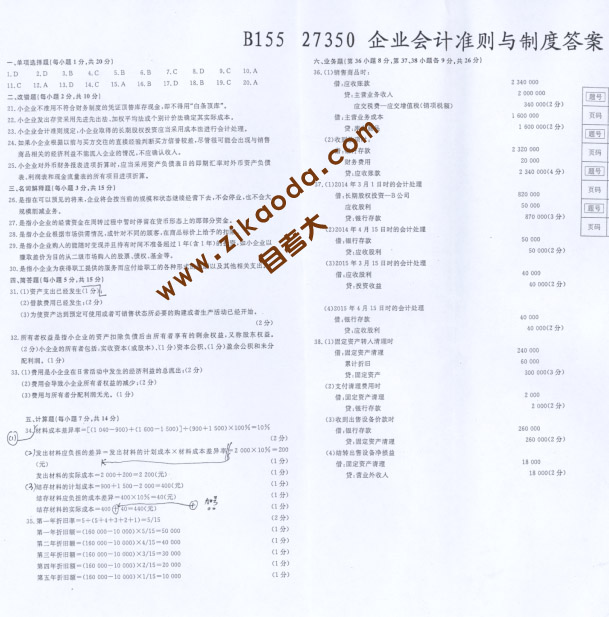 江蘇省2015年10月自考27350 企業(yè)會計準則與制度真題和答案