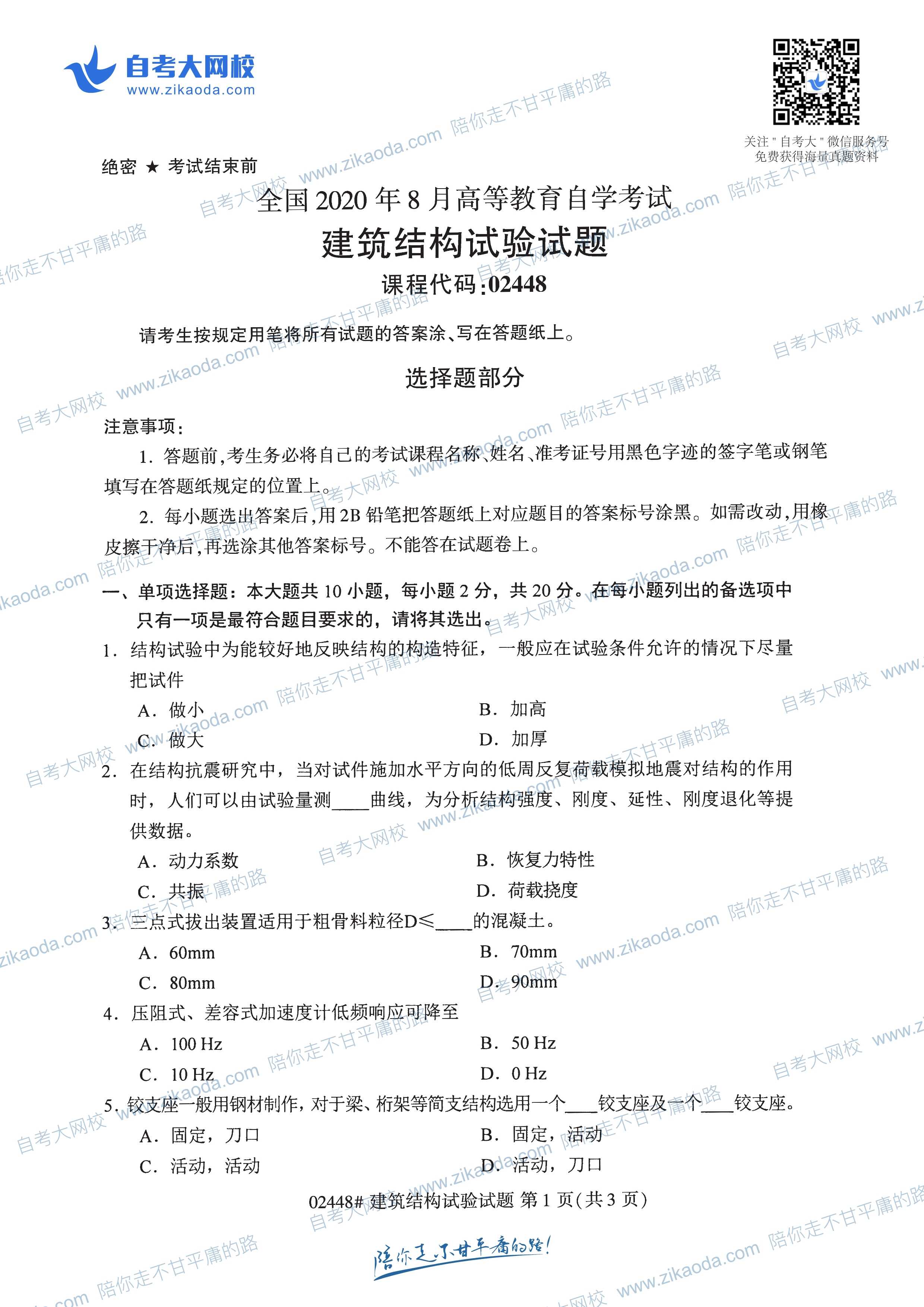 2022年10月全國(guó)自考02448建筑結(jié)構(gòu)試驗(yàn)真題試卷已經(jīng)可以免費(fèi)下載,該試卷由江蘇自考網(wǎng)整理