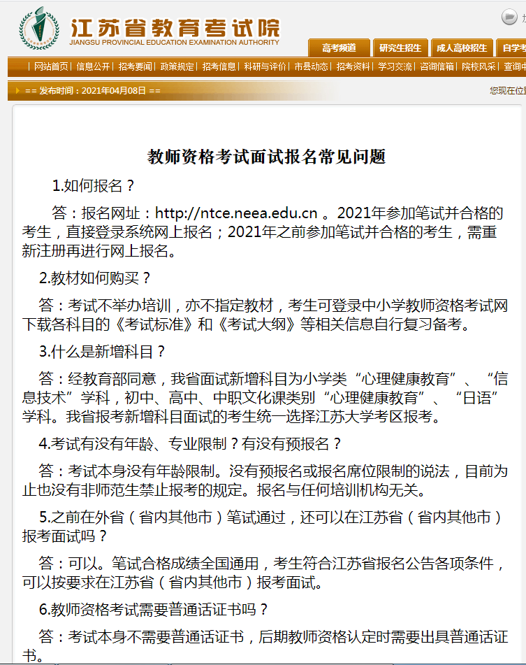 江蘇省教師資格考及試面試報(bào)名常見(jiàn)問(wèn)題