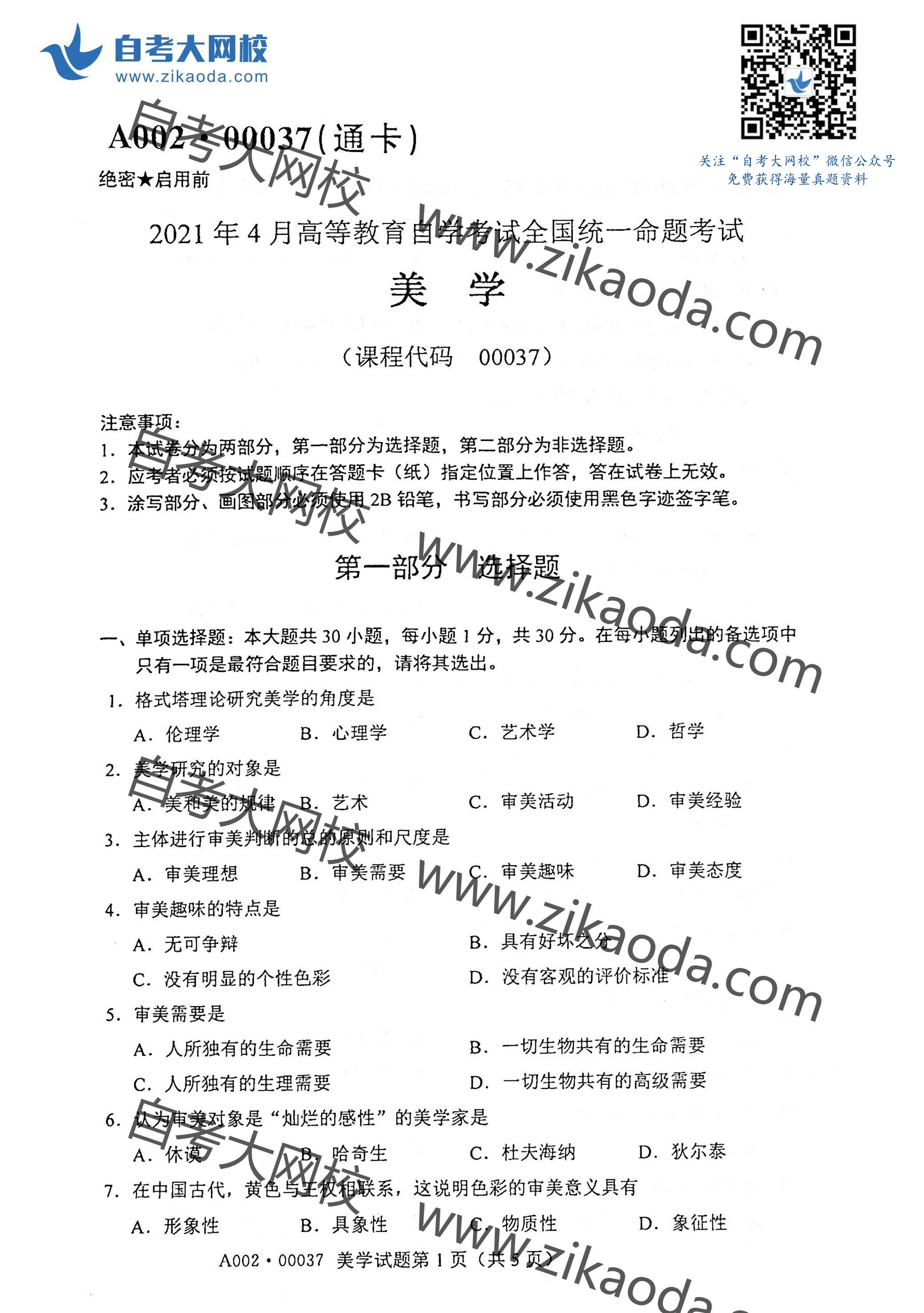 江蘇自考網(wǎng)回答:目前江蘇省教育考試院已經(jīng)公布了,江蘇省2023年4月自考教材計劃表,從教材計劃表內(nèi)容可知,自考00037美學(xué)教材代號是000371,該門課使用的教材名稱是:教材名稱,作者:朱立元主編主編,這門課指定的教材出版社是:北京大學(xué)出版社,出版社時間是[班次]版次。