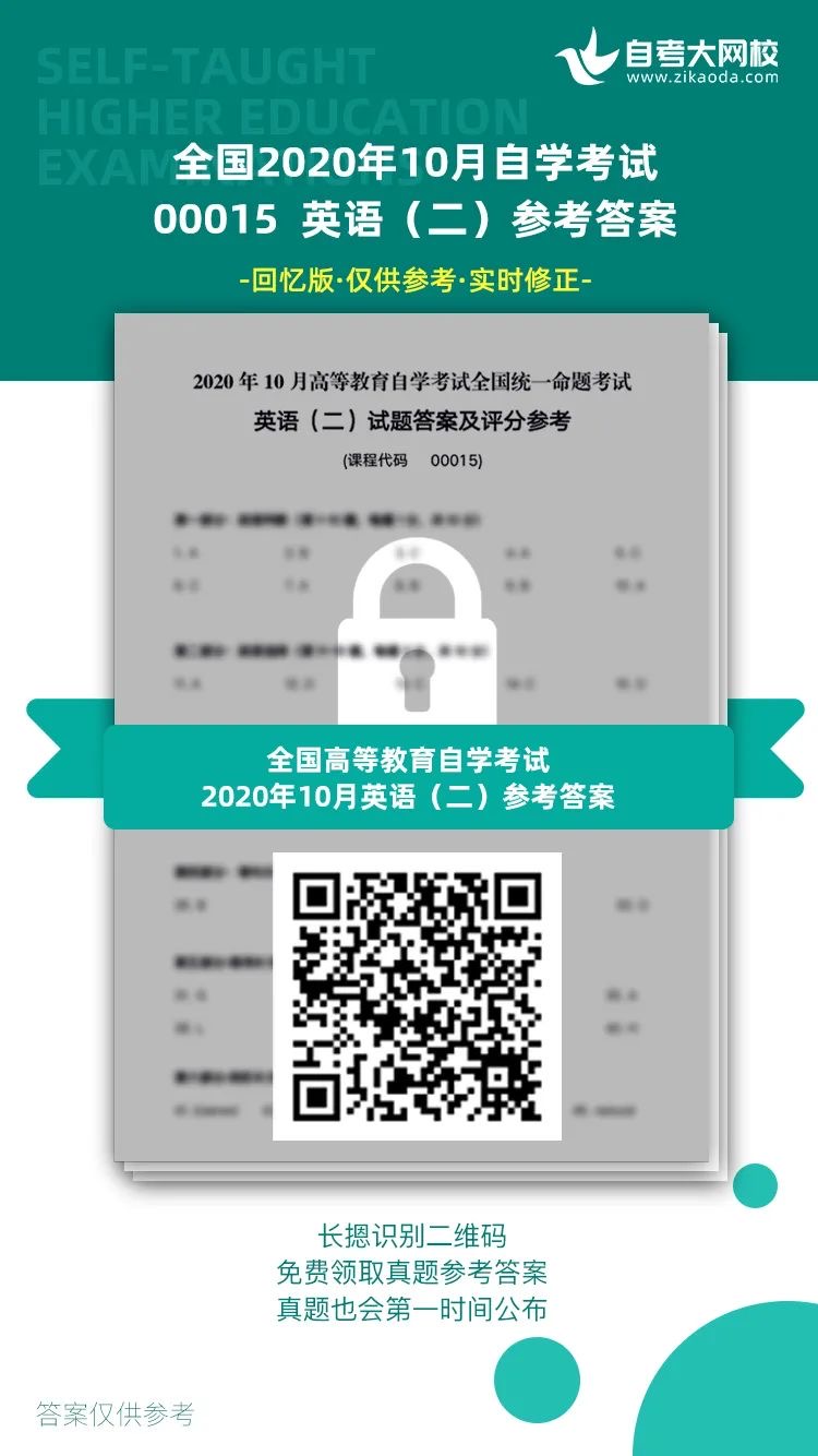 全國2020年10月自考英語(二)真題答案詳解以下參考答案由自考大網(wǎng)校整理匯總,江蘇自考網(wǎng)整理編輯,轉(zhuǎn)載請注明出處。第一部分:閱讀判斷(第1~10題,每題1分,共10分)1.A2.A3.C4.B5.A6.C7.B8.B9.C10.A第二部分:閱讀選擇(第1