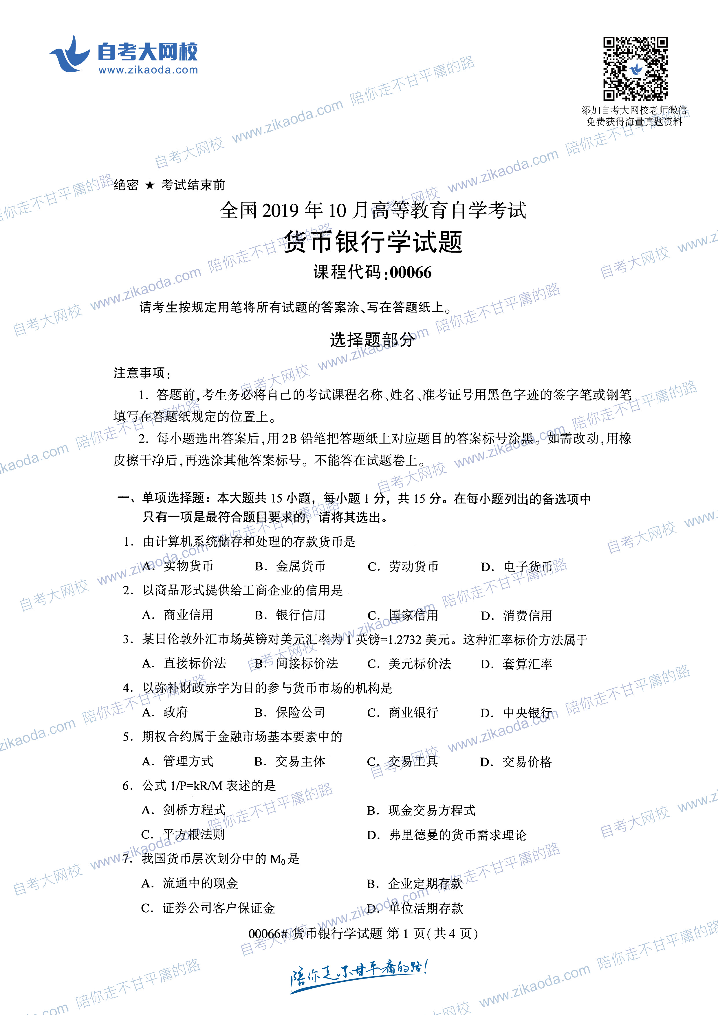 2022年10月全國自考00066貨幣銀行學(xué)真題試卷已經(jīng)可以免費(fèi)下載,該試卷由江蘇自考網(wǎng)整理
