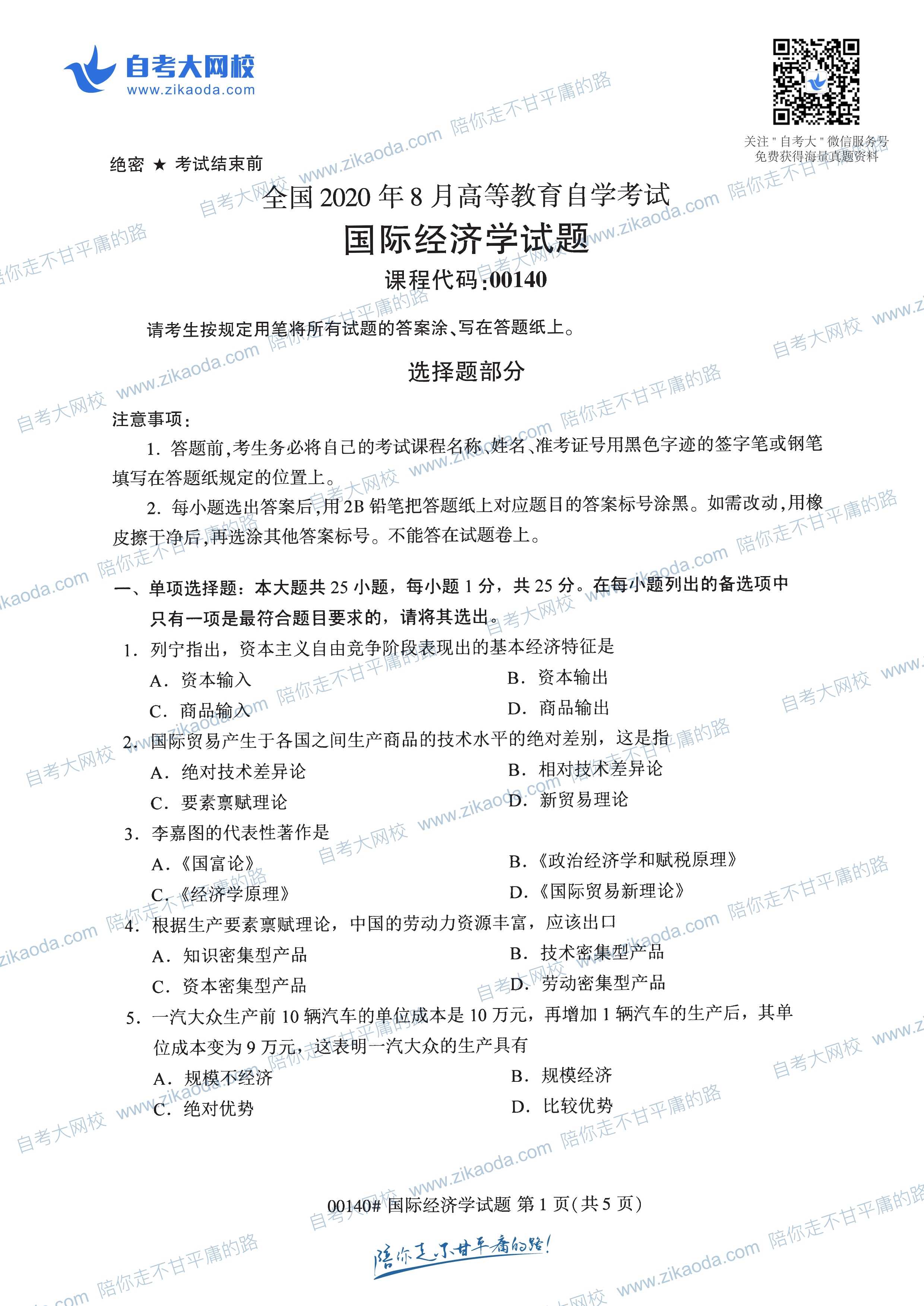 絕密★考試結束前 全國2014年4月高等教育自學考試 國際經濟學試題 課程代碼:00140 請考生按規(guī)定用筆將所有試題的答案涂、寫在答題紙上。 選擇題部分注意事項: 1.答題前,考生務必將自己的考試課程名稱、姓名、準考證號用黑色字跡的簽字筆或鋼筆填寫在答題紙規(guī)定的位置上。 2.每小題選出答案后,用2B鉛筆把答題紙上對應題目的答案標號涂黑。如需改動,用橡皮擦干凈后,再選涂其他答案標號。不能答