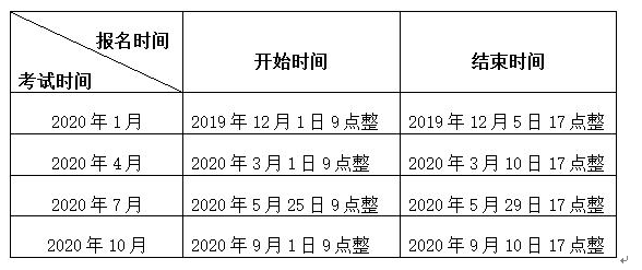 從2020年開始,我省自學(xué)考試網(wǎng)上報名全年分四次進(jìn)行。2020年1、4、7、10月份四次考試網(wǎng)上報名時間安排如下表: