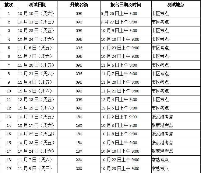 (三)每批次測試人數(shù)以上表公布的報(bào)名人數(shù)為準(zhǔn),額滿為止。