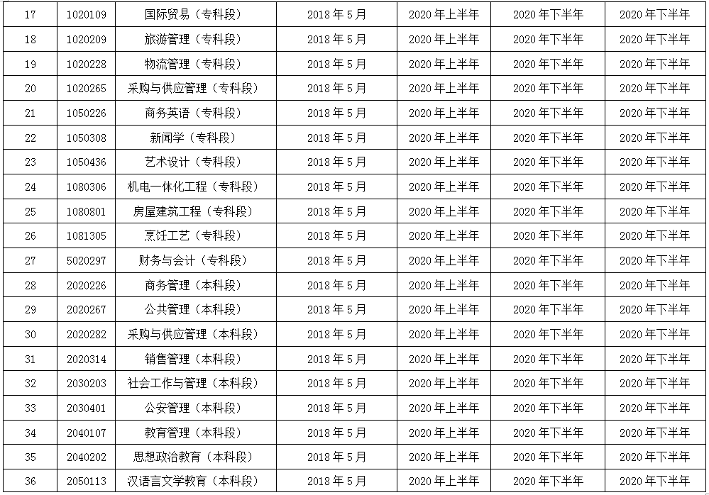 【答】同學(xué)你好,2020年江蘇省自考最新??紝?zhuān)業(yè)時(shí)間安排表已更新!請(qǐng)及時(shí)確認(rèn)報(bào)考專(zhuān)業(yè)最后一次理論課考試、論文答辯、辦理畢業(yè)的時(shí)間!江蘇省自考最新停考專(zhuān)業(yè)時(shí)間安排詳情如下表: