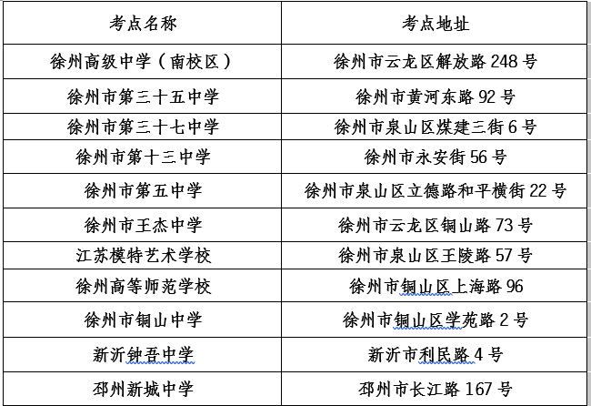 江蘇省2020年8月徐州市自學(xué)考試考點(diǎn)地址