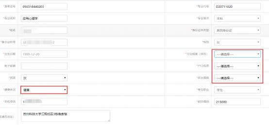 (二)輸入符合辦理畢業(yè)登記條件的學(xué)生準(zhǔn)考證號,部分個人信息系統(tǒng)自動匹配,健康狀況、文化程度、戶口性質(zhì)、政治面貌等信息需如實(shí)登記,完成后點(diǎn)擊“保存并下一步”按鈕。(文化程度指2021年12月30日前(含)獲得的學(xué)歷)