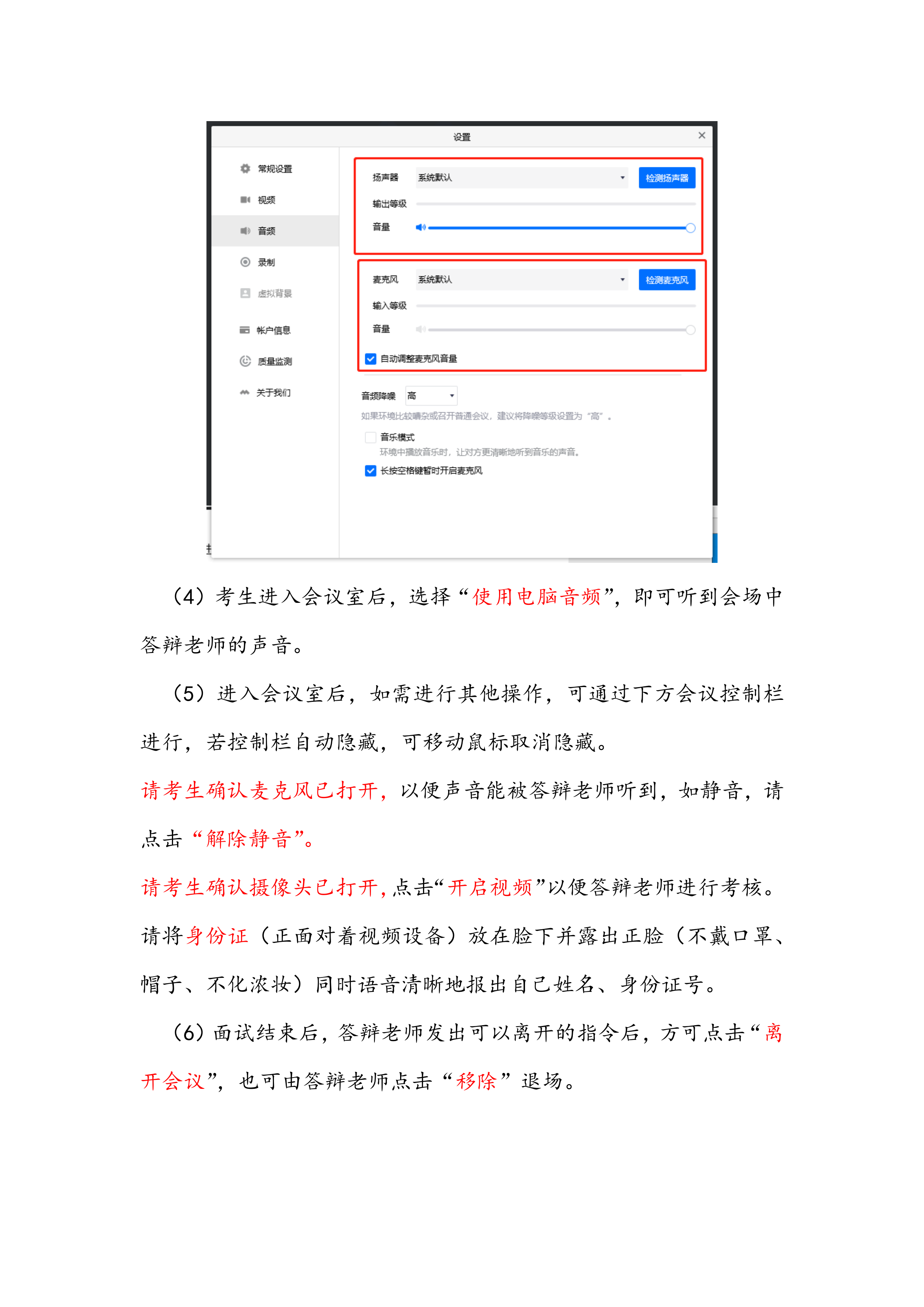 2、考生須提前測試設(shè)備和網(wǎng)絡(luò),確保電量充足、音頻、視頻圖像清晰、網(wǎng)絡(luò)暢通,全程關(guān)閉任何有可能影響答辯的應(yīng)用程 序。