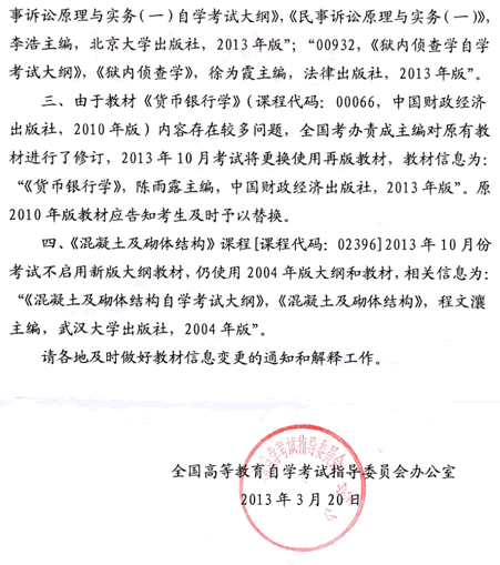 2013年高等教育自學(xué)考試全國(guó)統(tǒng)考課程教材大綱和2013年高等教育自學(xué)考試全國(guó)統(tǒng)考課程新編或修訂的考試大綱、教材目錄。