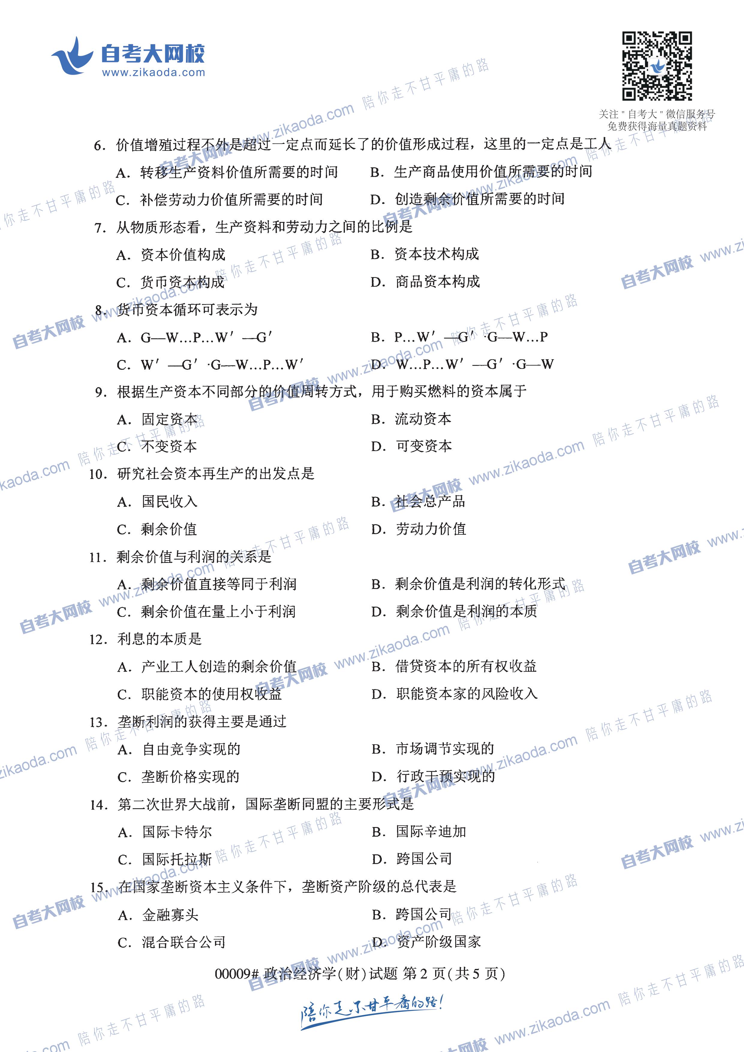 全國2019年4月自學(xué)考試 00009 政治經(jīng)濟(jì)學(xué)概論真題試卷免費下載