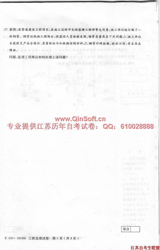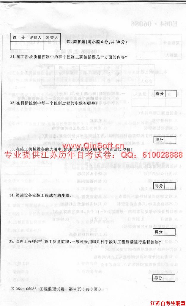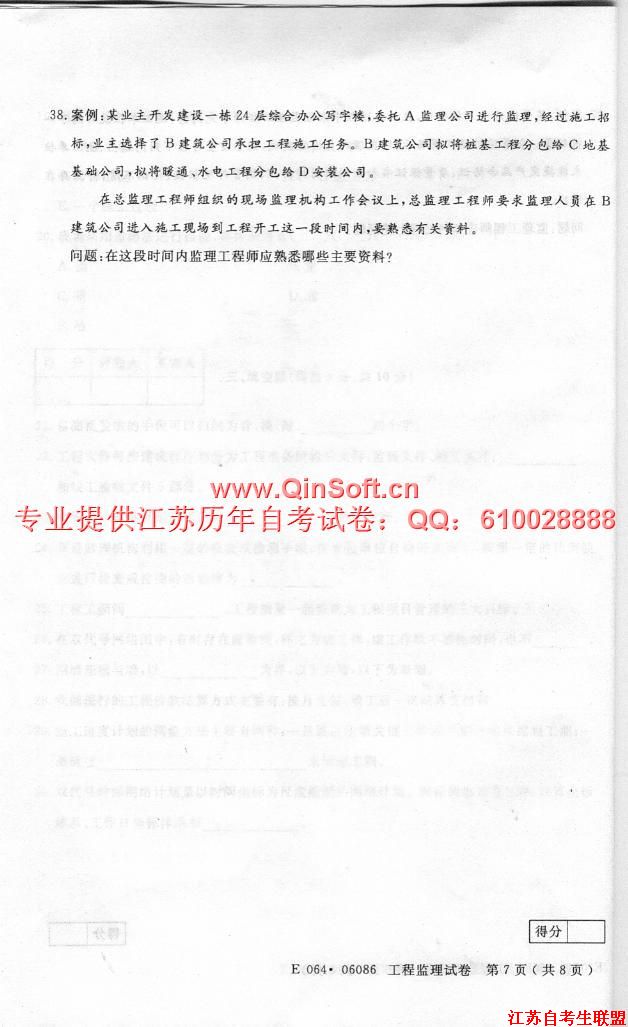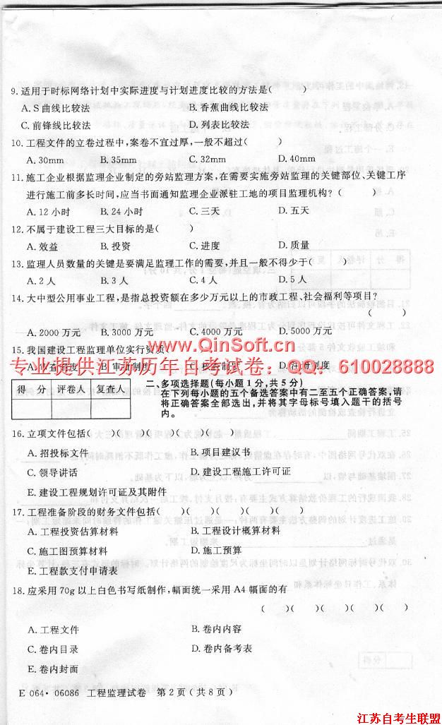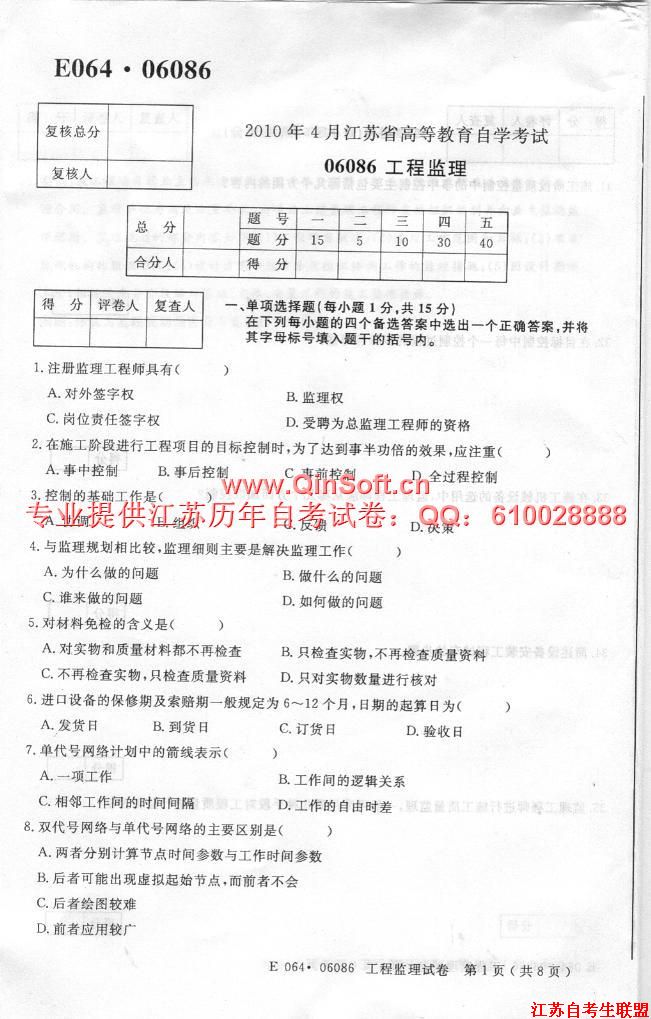 以上是關(guān)于2010年4月06086工程監(jiān)理真題試卷已公布的相關(guān)信息,請(qǐng)自考生們認(rèn)真查看,如果你想獲取最新的江蘇自考新聞或者江蘇自考問題答疑,可以掃描江蘇自考網(wǎng)公眾號(hào)二維碼,我們會(huì)最第一時(shí)間內(nèi)為你解答。