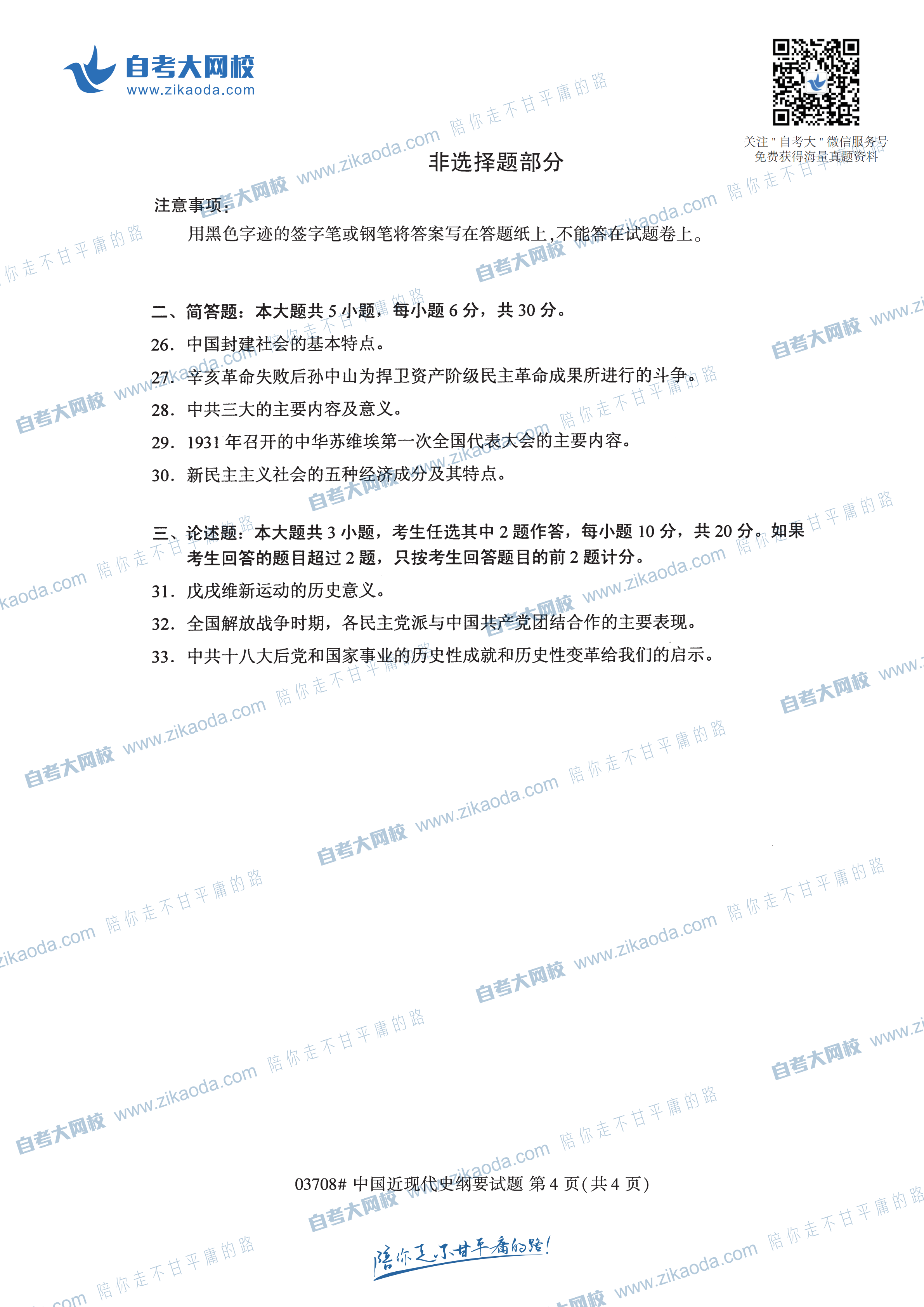 以上是關于全國2019年4月自考03708中國近現(xiàn)代史綱要真題試卷免費下載已公布的相關信息,請自考生們認真查看,如果你想獲取最新的江蘇自考新聞或者江蘇自考問題答疑,可以掃描江蘇自考網(wǎng)公眾號二維碼,我們會最第一時間內為你解答。