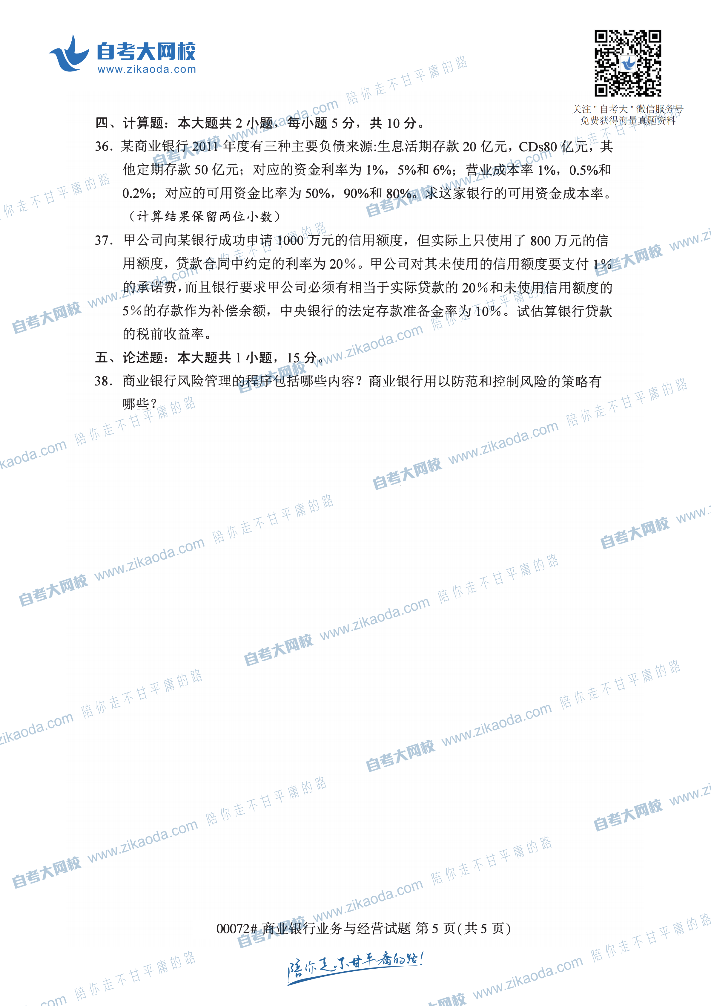 以上是關(guān)于全國2019年4月自考00072商業(yè)銀行業(yè)務(wù)與經(jīng)營真題試卷免費下載已公布的相關(guān)信息,請自考生們認(rèn)真查看,如果你想獲取最新的江蘇自考新聞或者江蘇自考問題答疑,可以掃描江蘇自考網(wǎng)公眾號二維碼,我們會最第一時間內(nèi)為你解答。