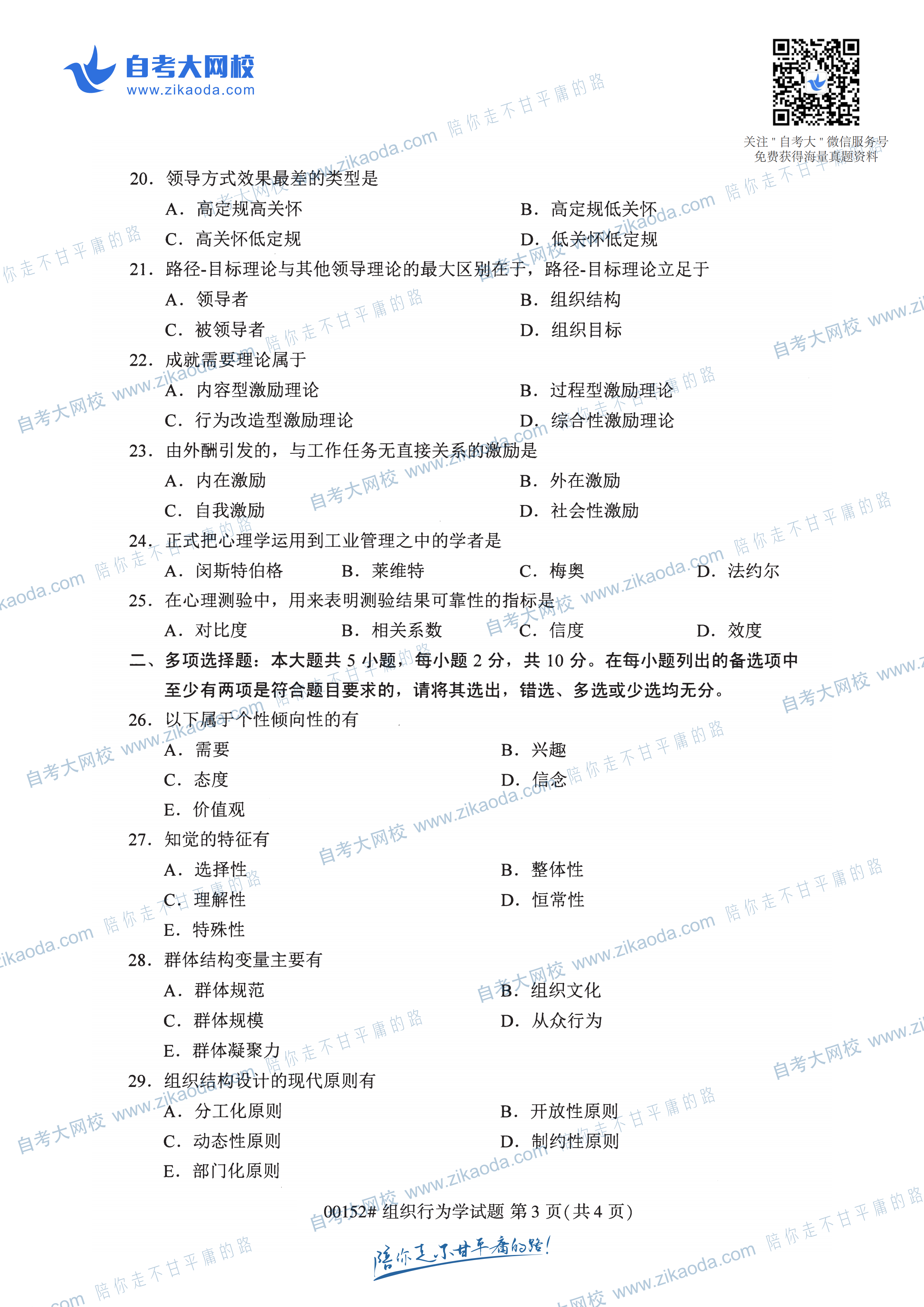 以上是關(guān)于全國2019年4月自考00152組織行為學(xué)真題試卷免費(fèi)下載已公布的相關(guān)信息,請自考生們認(rèn)真查看,如果你想獲取最新的江蘇自考新聞或者江蘇自考問題答疑,可以掃描江蘇自考網(wǎng)公眾號二維碼,我們會最第一時間內(nèi)為你解答。