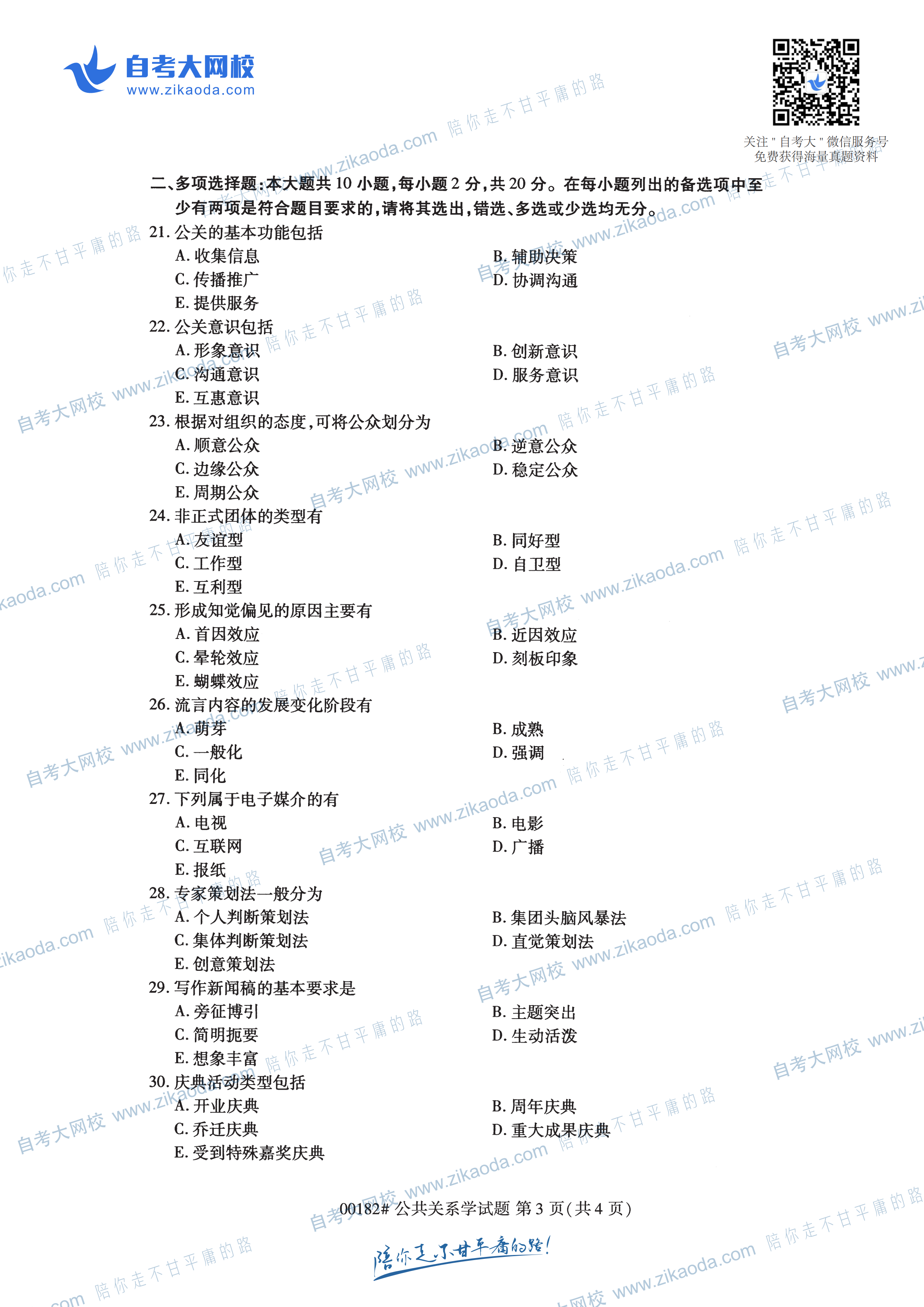 以上是關(guān)于全國2019年4月自考00182公共關(guān)系學真題試卷免費下載已公布的相關(guān)信息,請自考生們認真查看,如果你想獲取最新的江蘇自考新聞或者江蘇自考問題答疑,可以掃描江蘇自考網(wǎng)公眾號二維碼,我們會最第一時間內(nèi)為你解答。