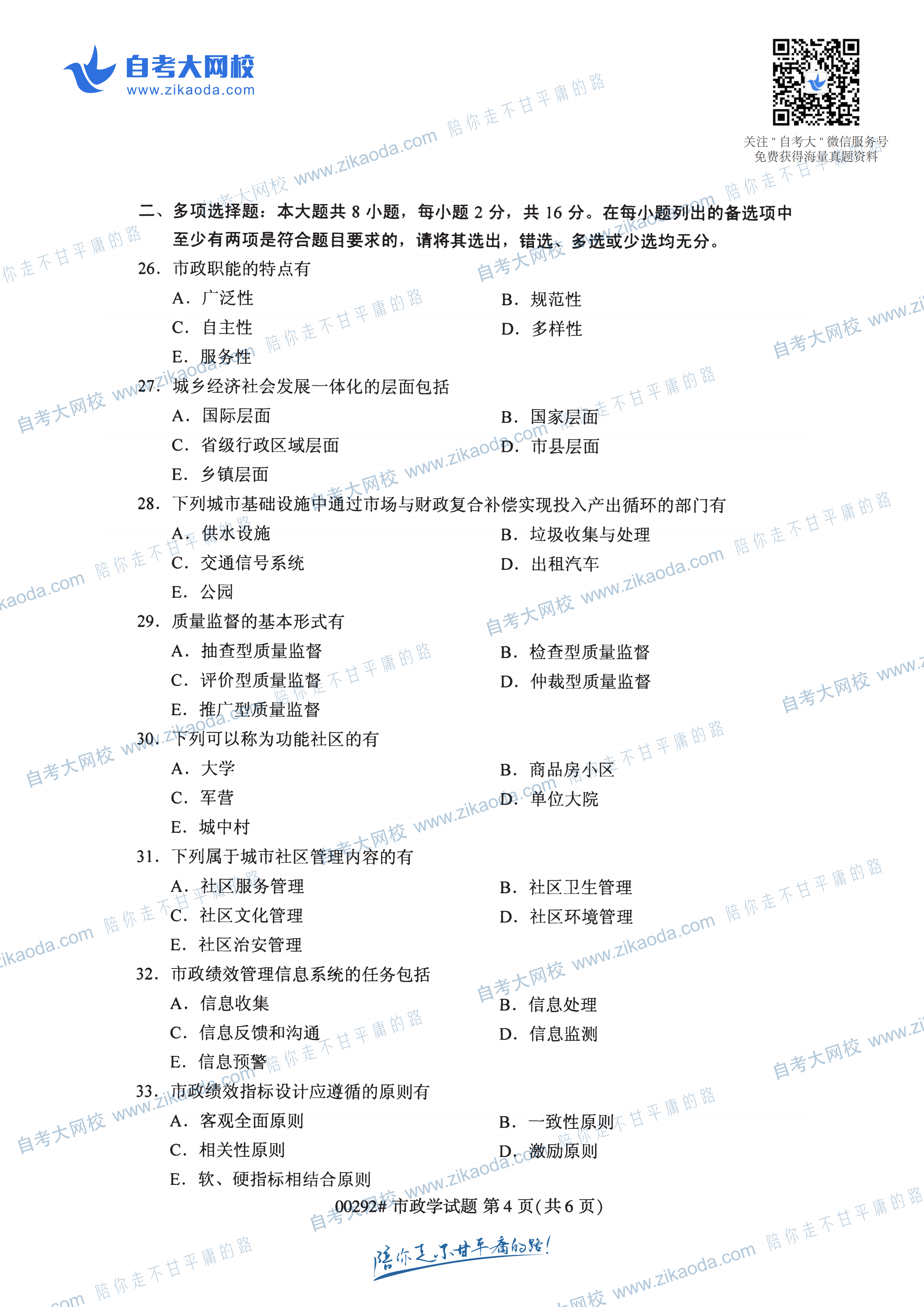 以上是關(guān)于全國(guó)2019年4月自考00292市政學(xué)真題試卷免費(fèi)下載已公布的相關(guān)信息,請(qǐng)自考生們認(rèn)真查看,如果你想獲取最新的江蘇自考新聞或者江蘇自考問(wèn)題答疑,可以掃描江蘇自考網(wǎng)公眾號(hào)二維碼,我們會(huì)最第一時(shí)間內(nèi)為你解答。