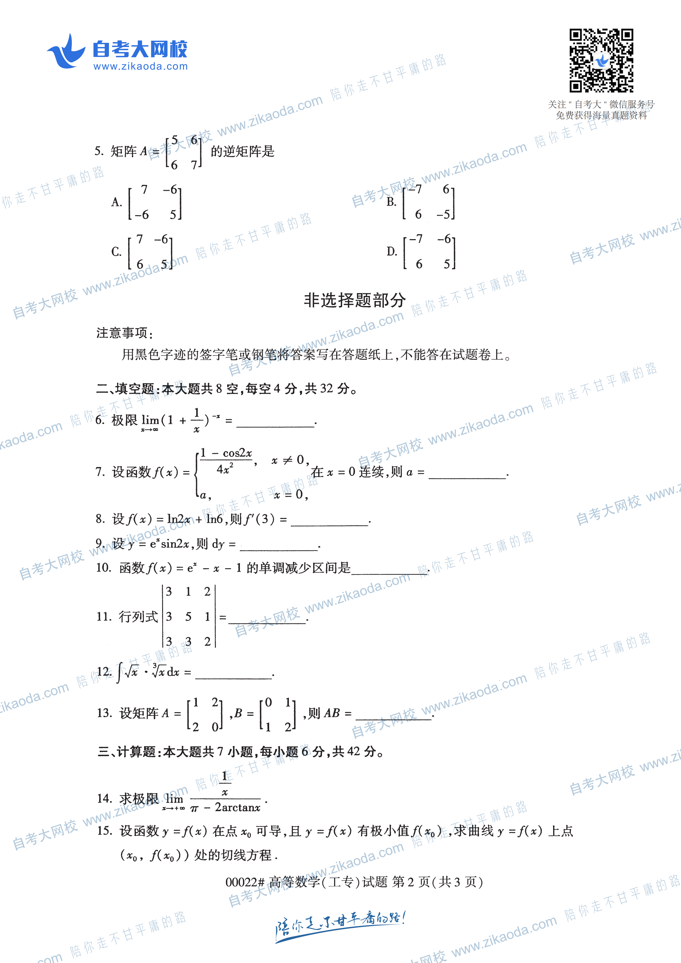 以上是關(guān)于全國2019年4月自考00022高等數(shù)學(xué)(工專)真題試卷免費下載已公布的相關(guān)信息,請自考生們認(rèn)真查看,如果你想獲取最新的江蘇自考新聞或者江蘇自考問題答疑,可以掃描江蘇自考網(wǎng)公眾號二維碼,我們會最第一時間內(nèi)為你解答。