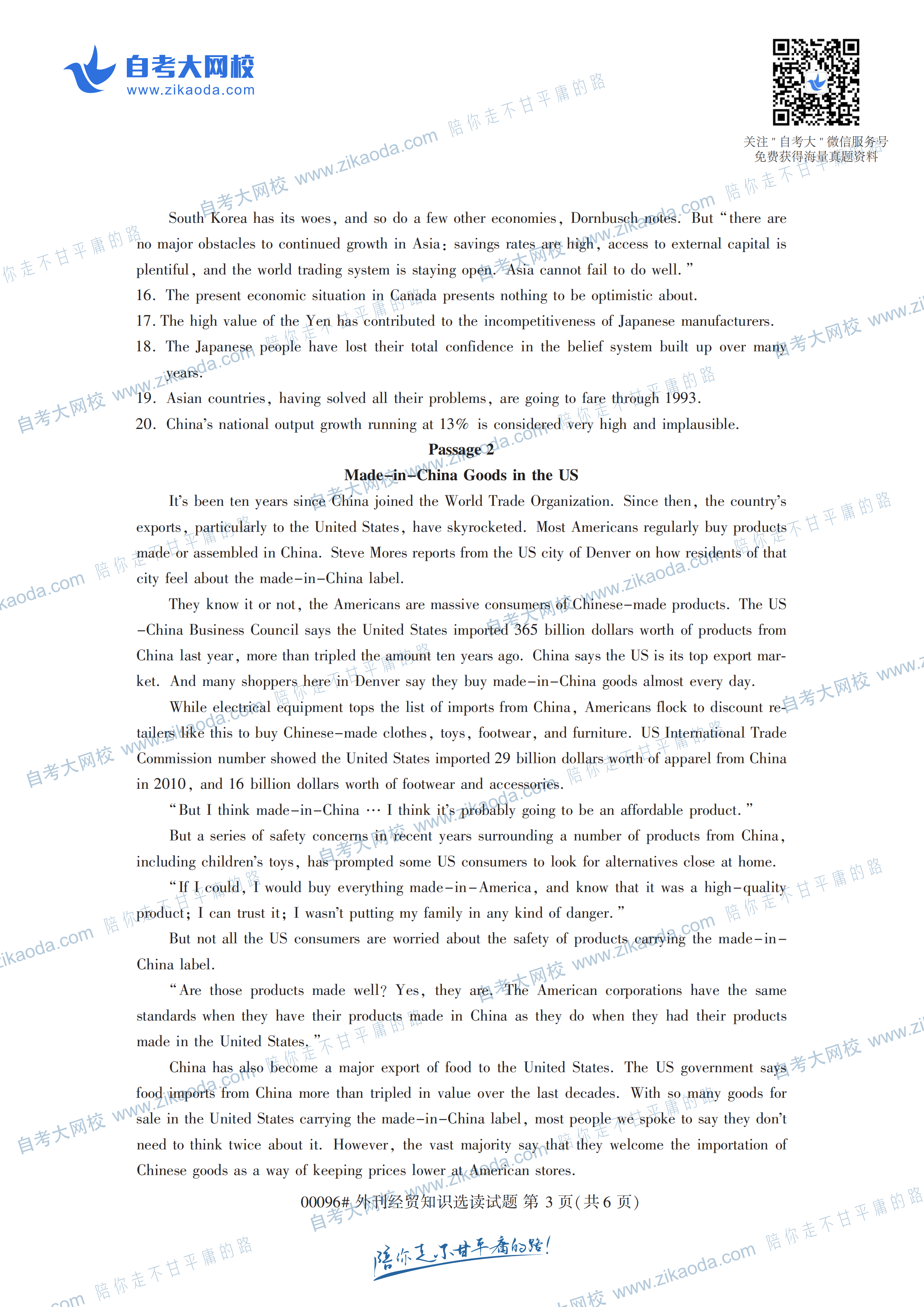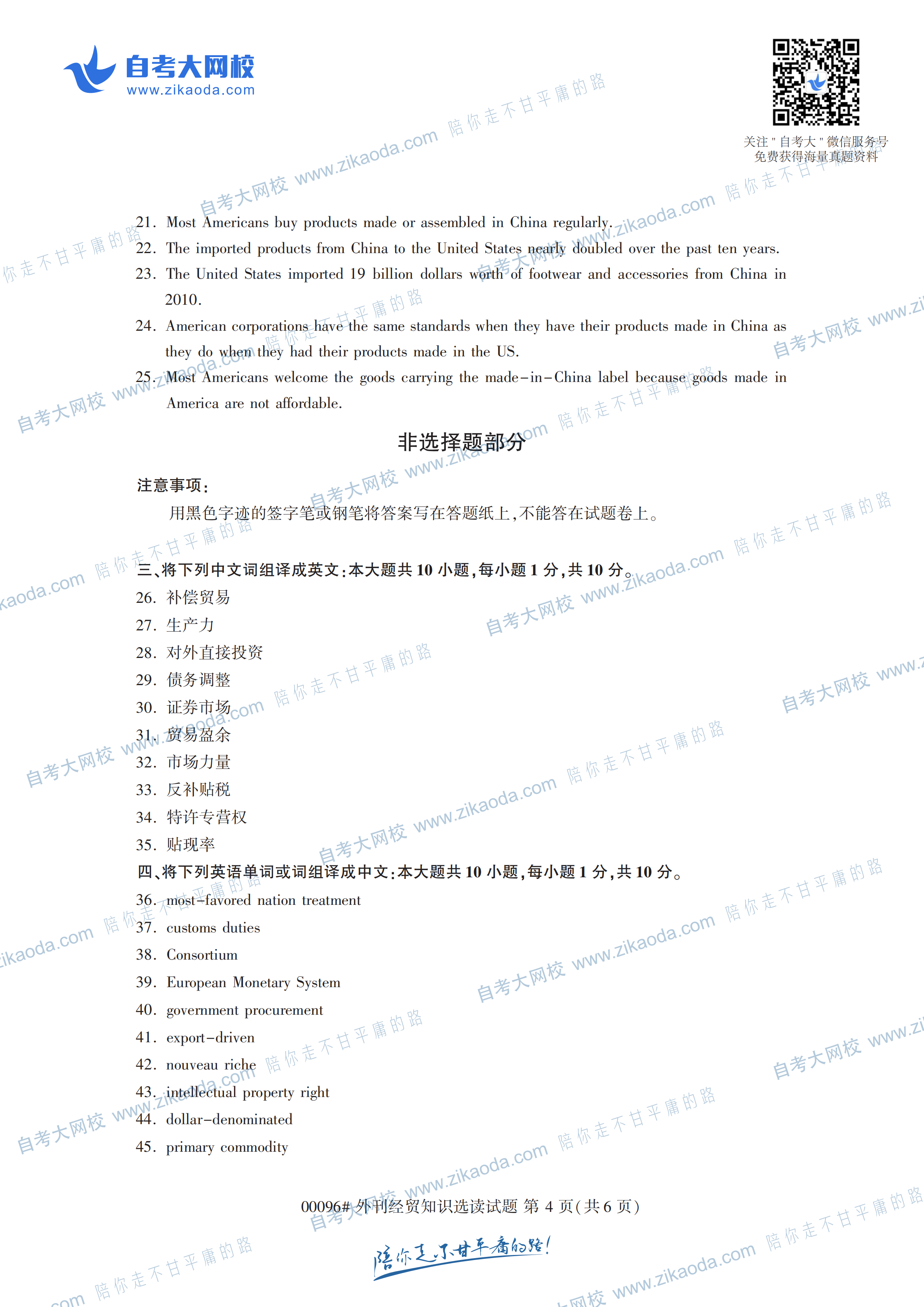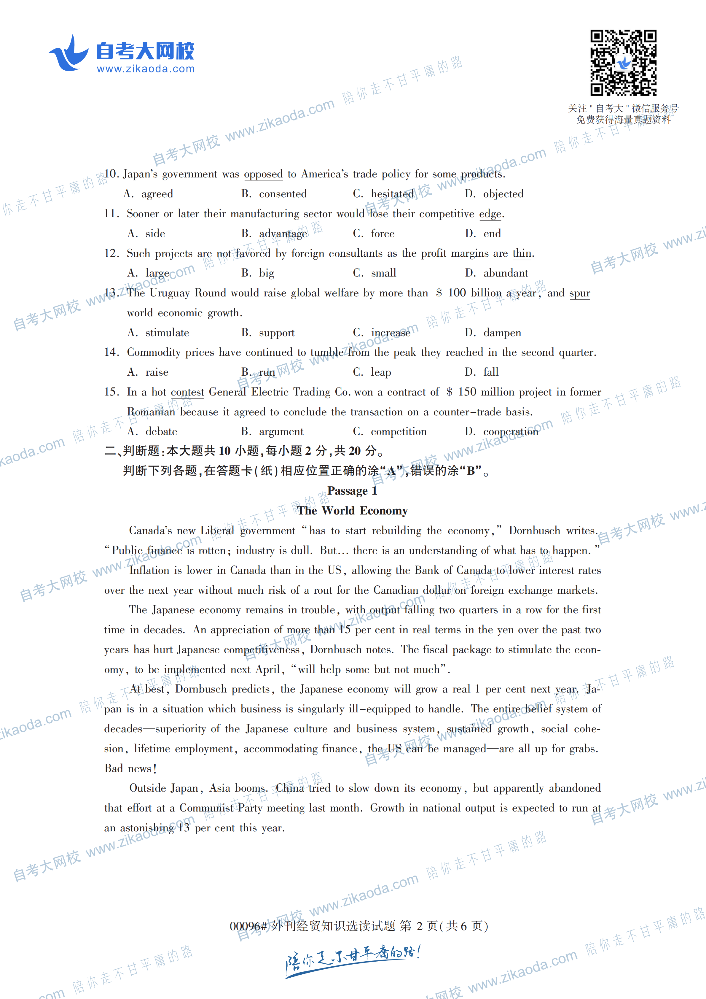 以上是關(guān)于全國(guó)2019年4月自考00096外刊經(jīng)貿(mào)知識(shí)選讀真題試卷免費(fèi)下載已公布的相關(guān)信息,請(qǐng)自考生們認(rèn)真查看,如果你想獲取最新的江蘇自考新聞或者江蘇自考問題答疑,可以掃描江蘇自考網(wǎng)公眾號(hào)二維碼,我們會(huì)最第一時(shí)間內(nèi)為你解答。