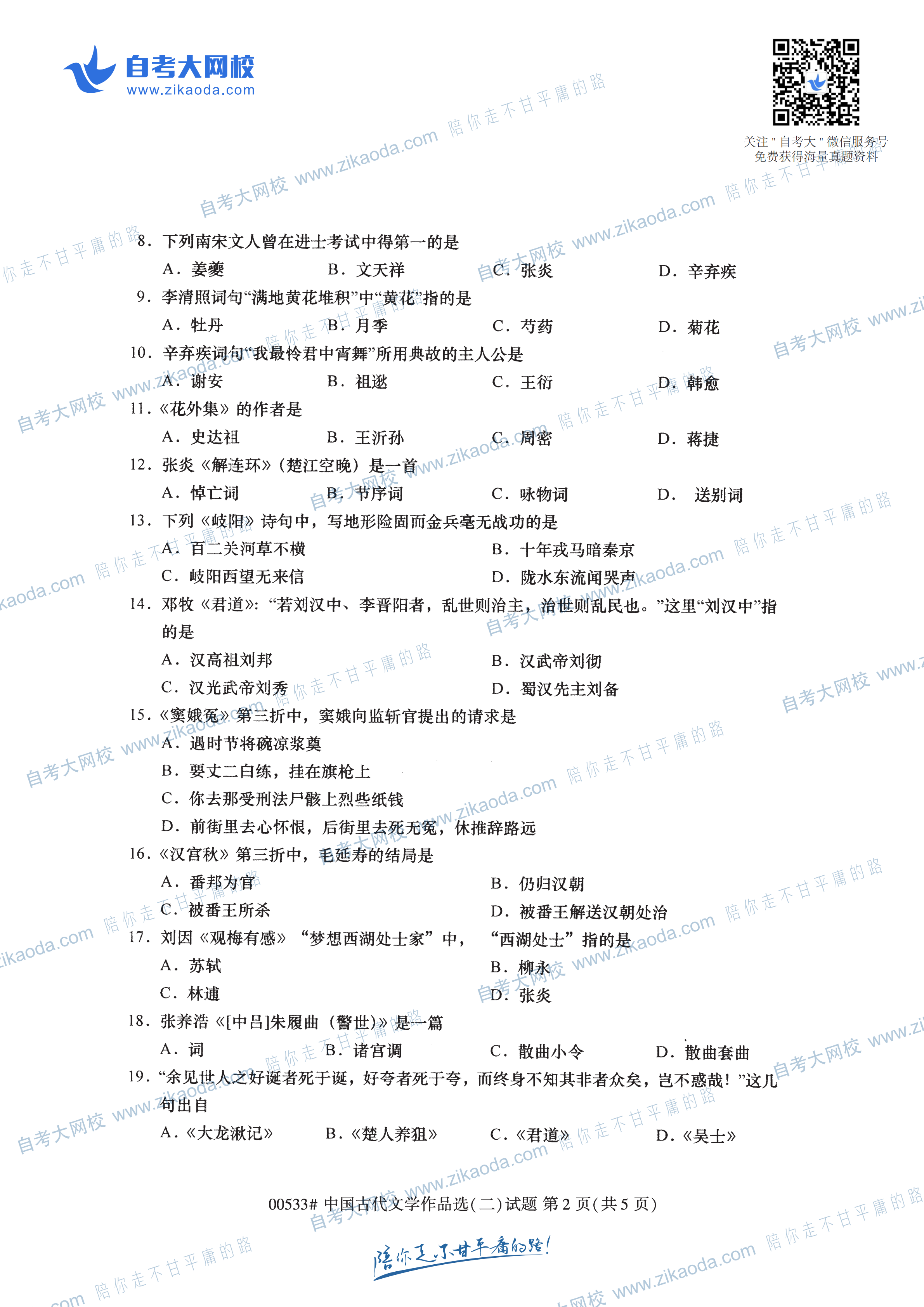 全國2019年4月自考00533中國古代文學(xué)作品選(二)真題試卷免費(fèi)下載