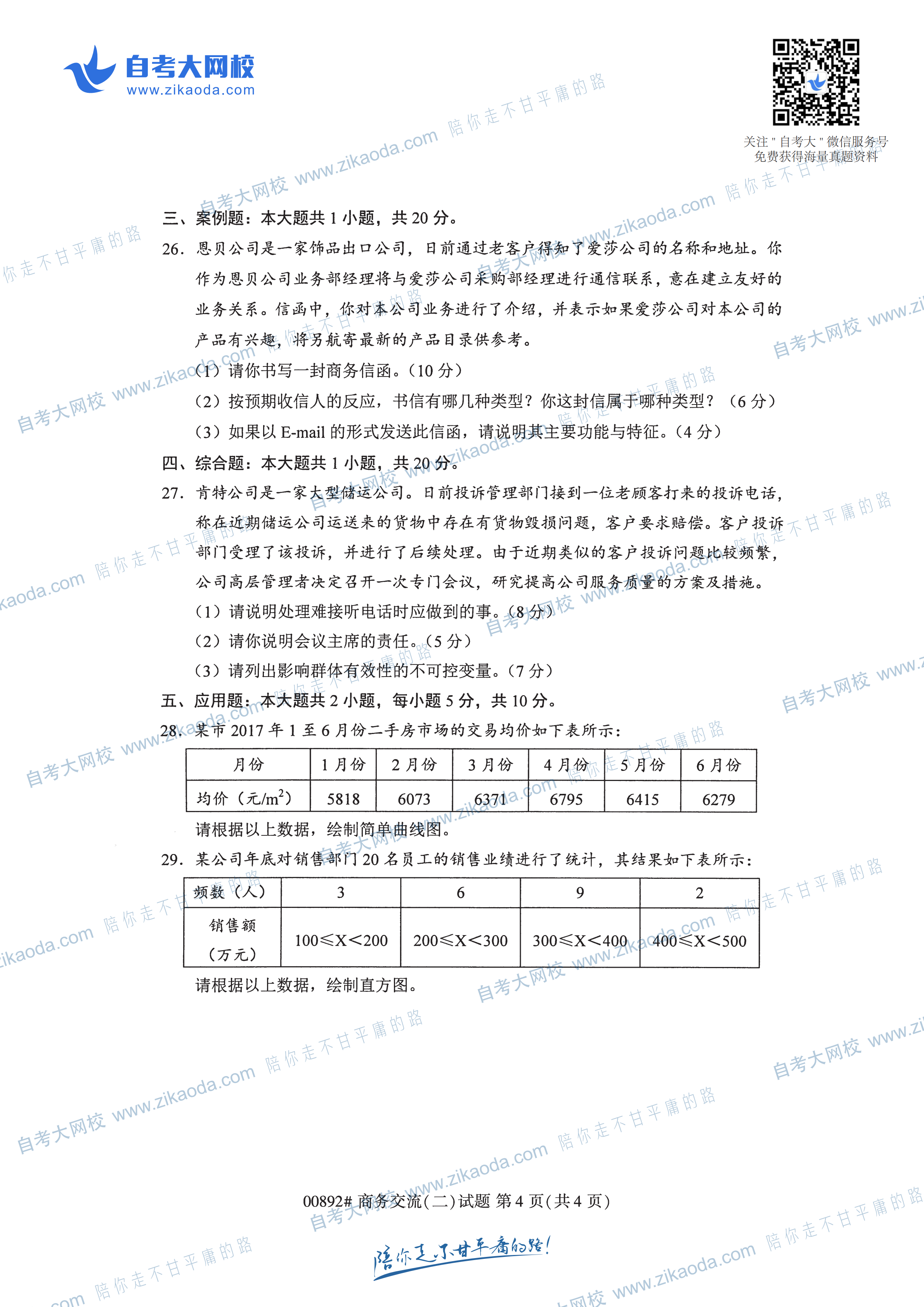 全國(guó)2019年4月自考00892商務(wù)交流(二) 真題試卷免費(fèi)下載