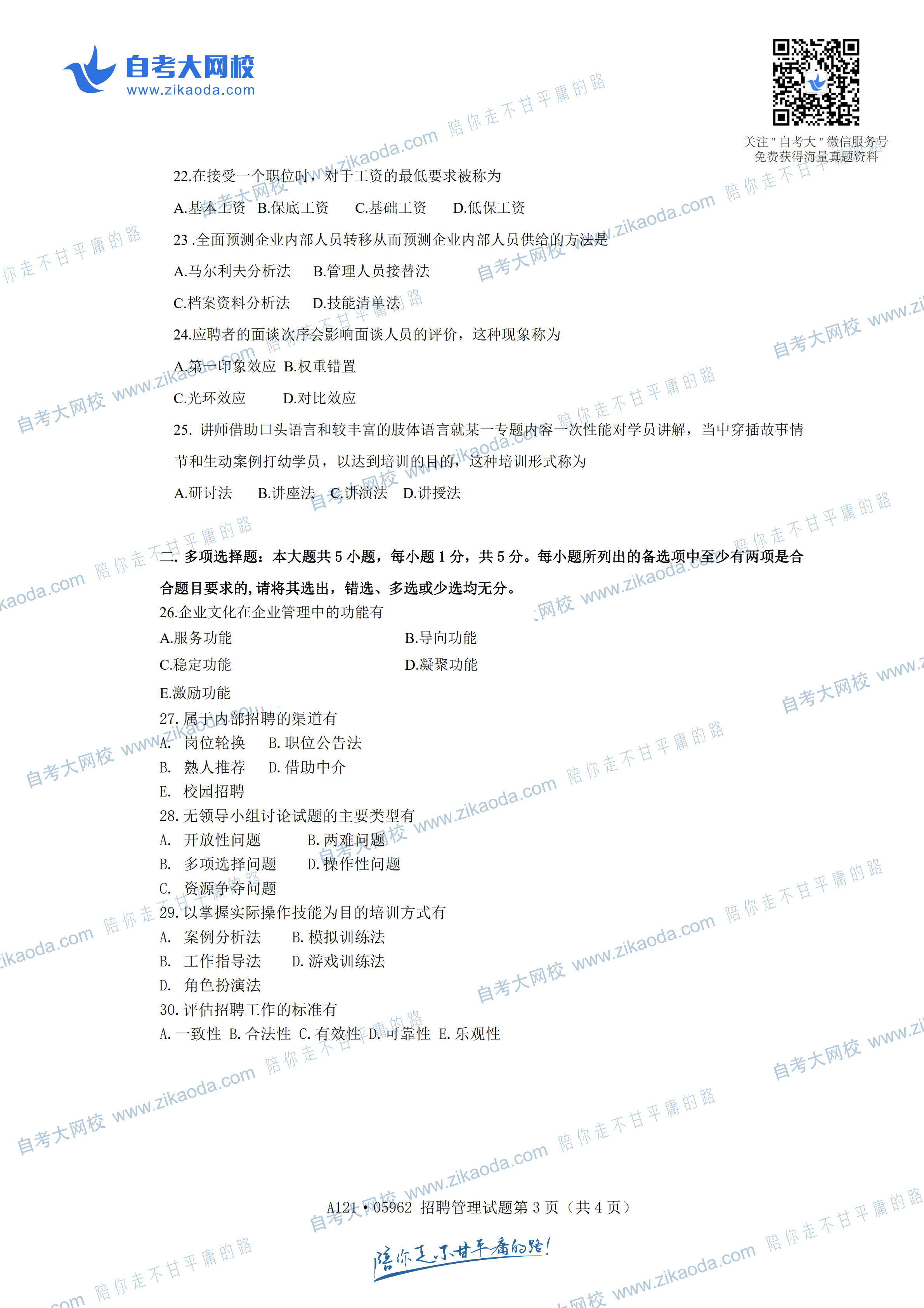 江蘇省2019年6月自考05962招聘管理真題試卷免費下載