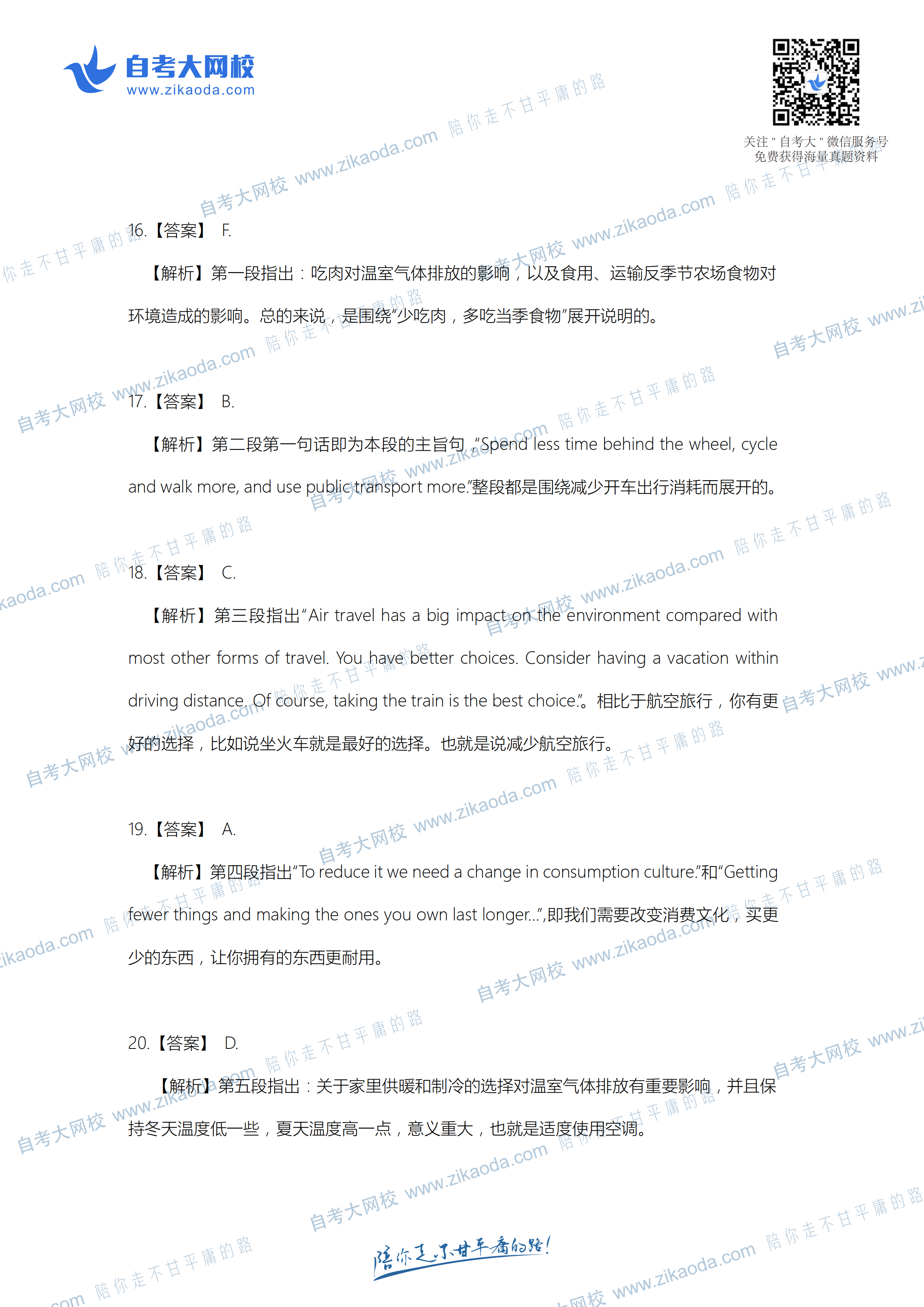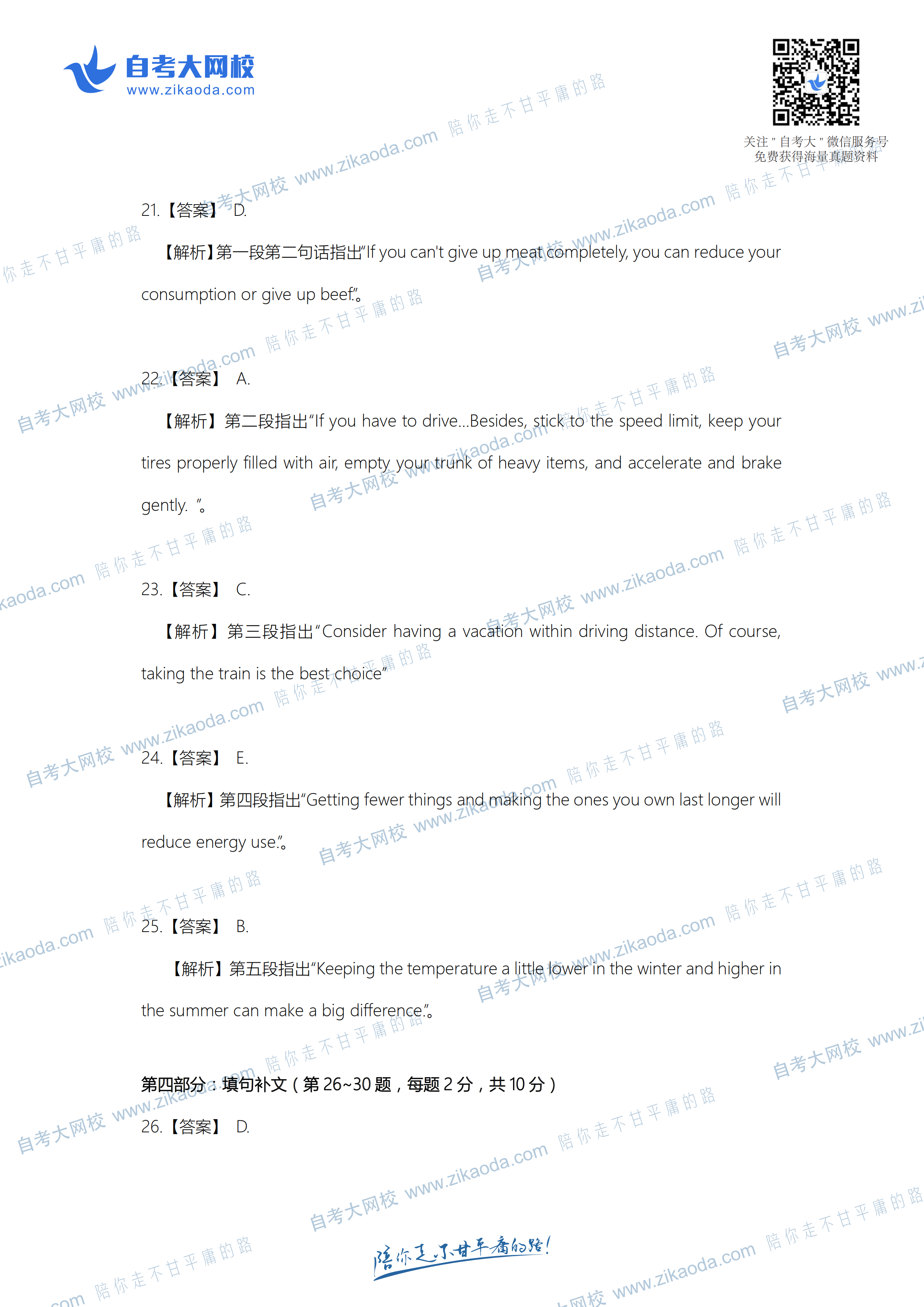 2019年4月英語(yǔ)(二)試卷答案及評(píng)分參考