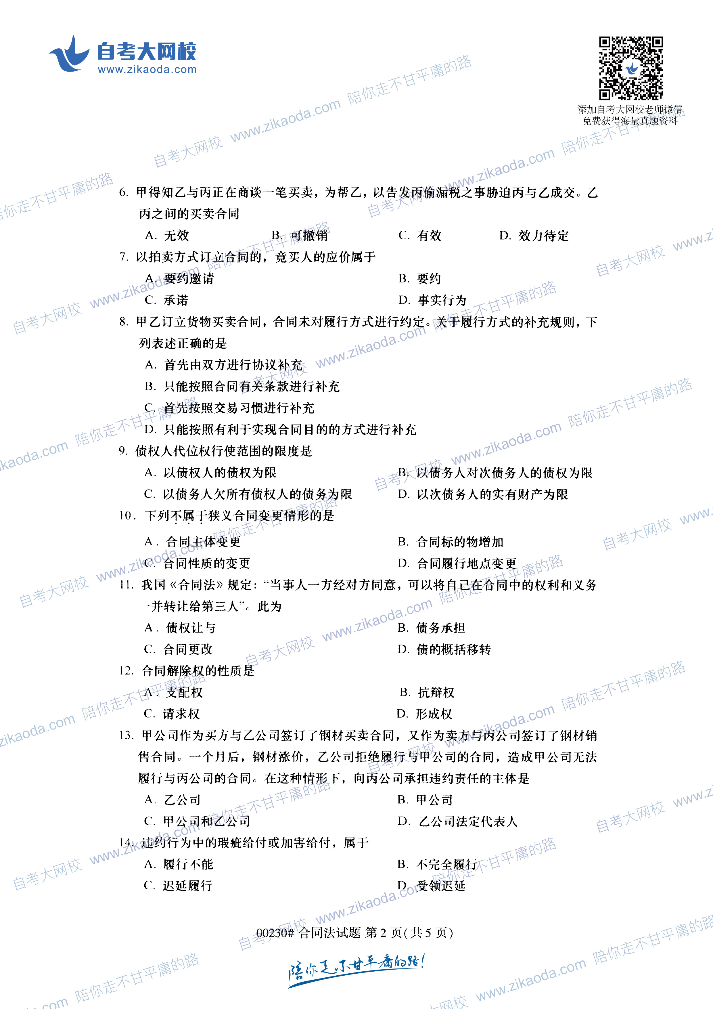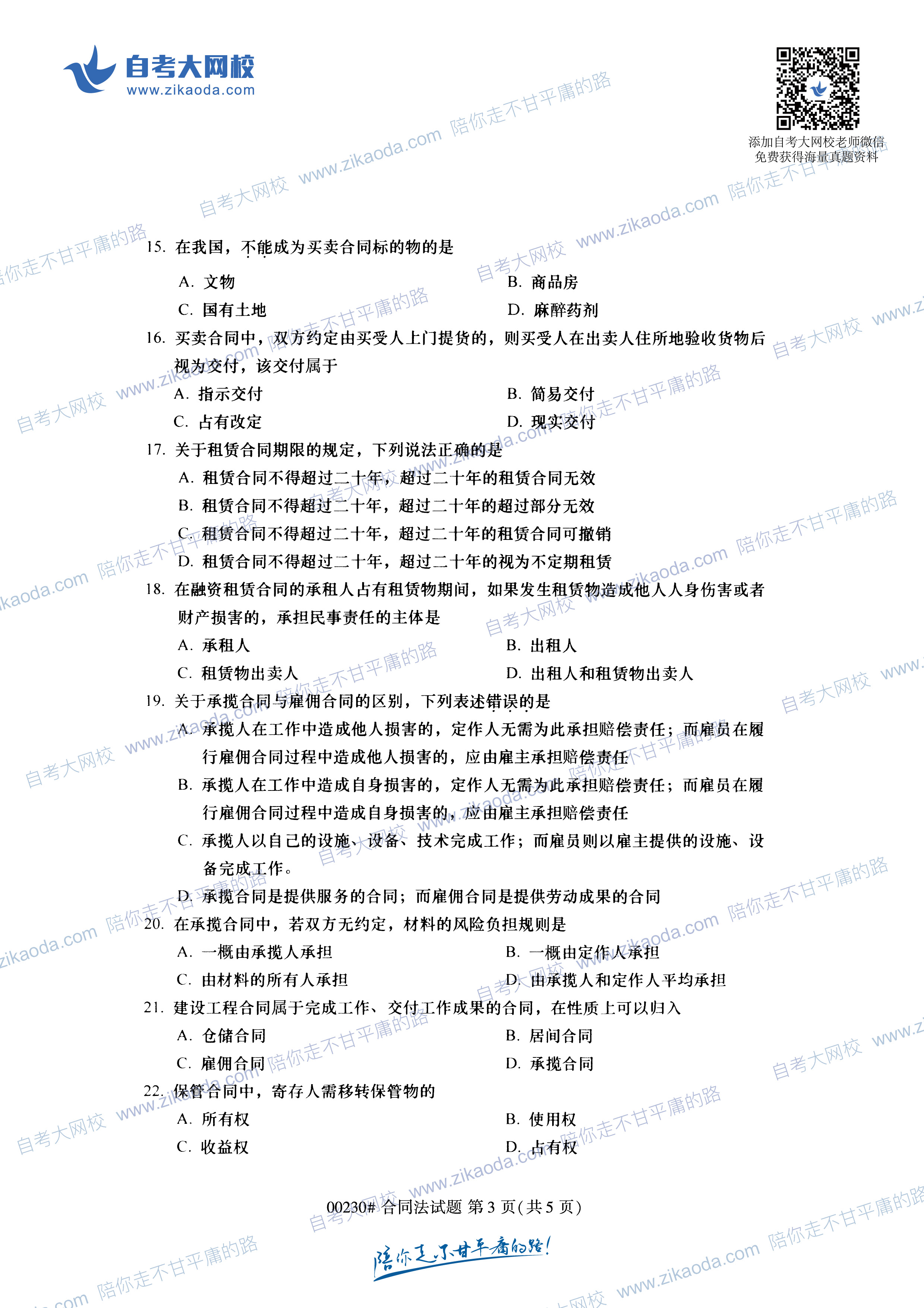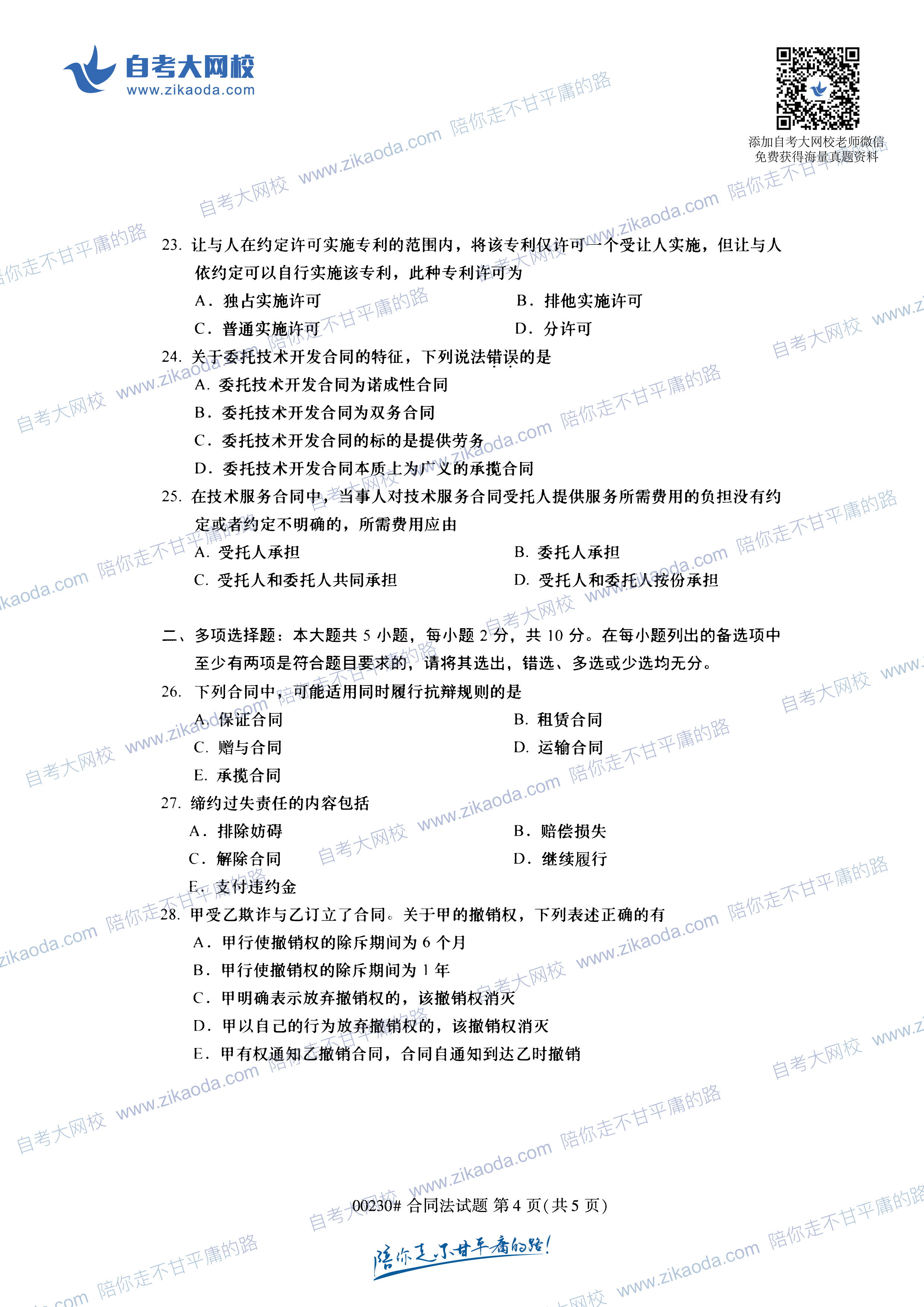 以上是關于全國2019年10月自考00230合同法真題試卷免費下載!已公布的相關信息,請自考生們認真查看,如果你想獲取最新的江蘇自考新聞或者江蘇自考問題答疑,可以掃描江蘇自考網公眾號二維碼,我們會最第一時間內為你解答。