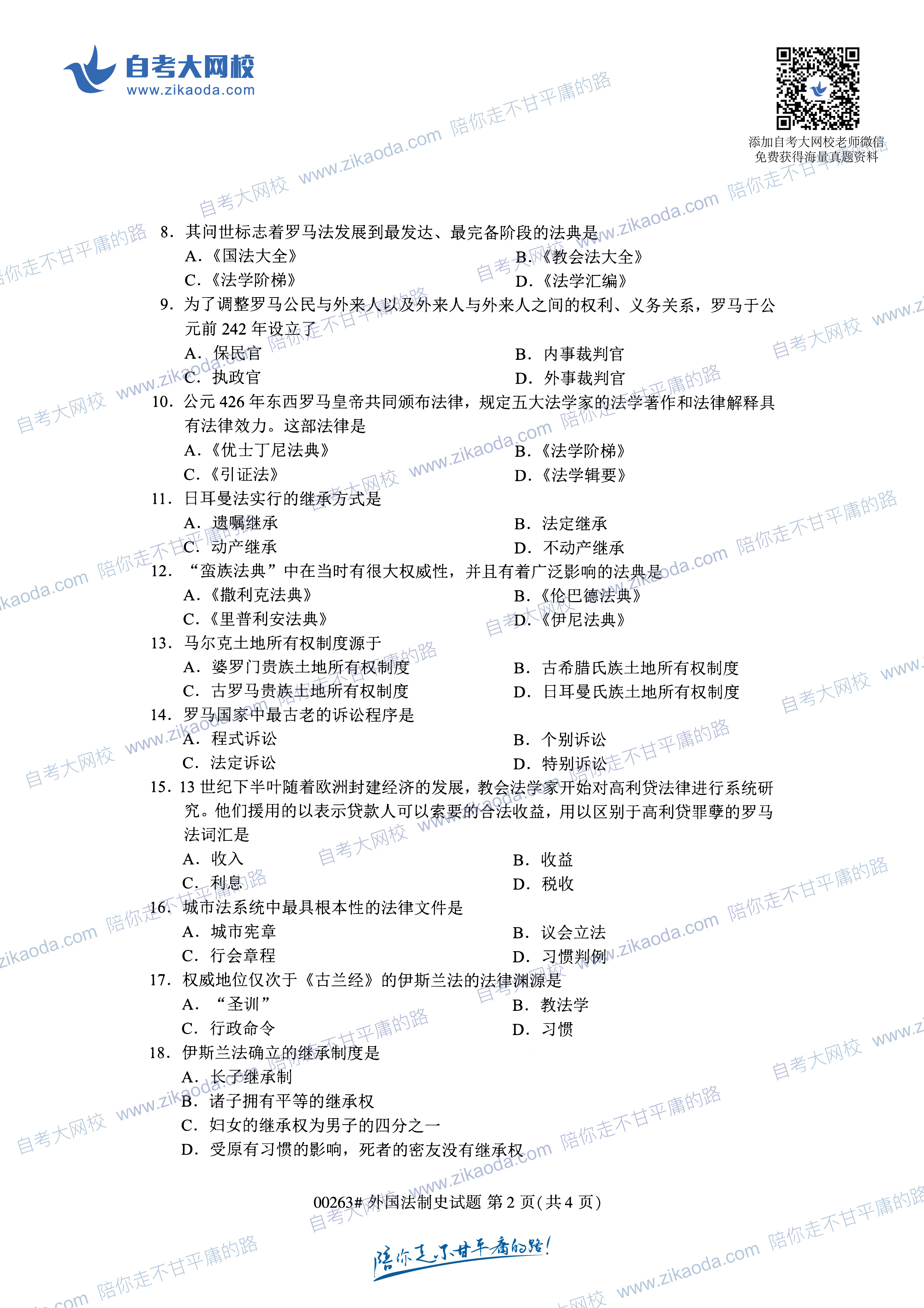 以上是關(guān)于全國(guó)2019年10月自考00263外國(guó)法制史真題試卷免費(fèi)下載!已公布的相關(guān)信息,請(qǐng)自考生們認(rèn)真查看,如果你想獲取最新的江蘇自考新聞或者江蘇自考問(wèn)題答疑,可以掃描江蘇自考網(wǎng)公眾號(hào)二維碼,我們會(huì)最第一時(shí)間內(nèi)為你解答。