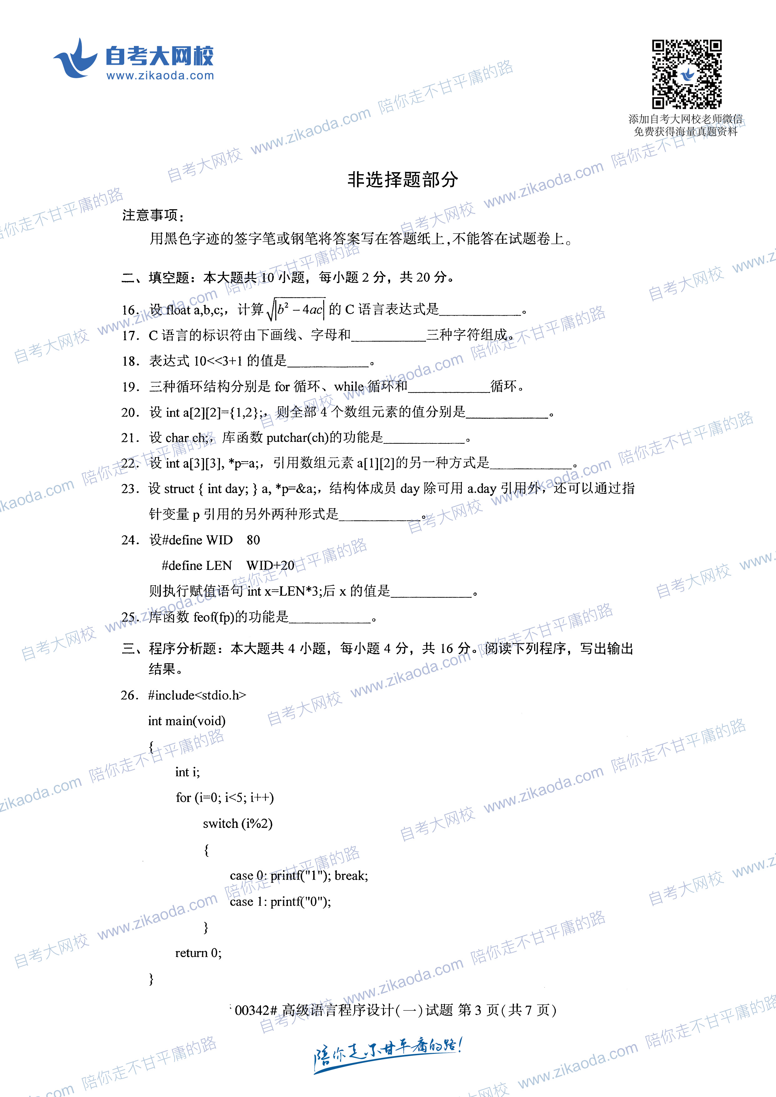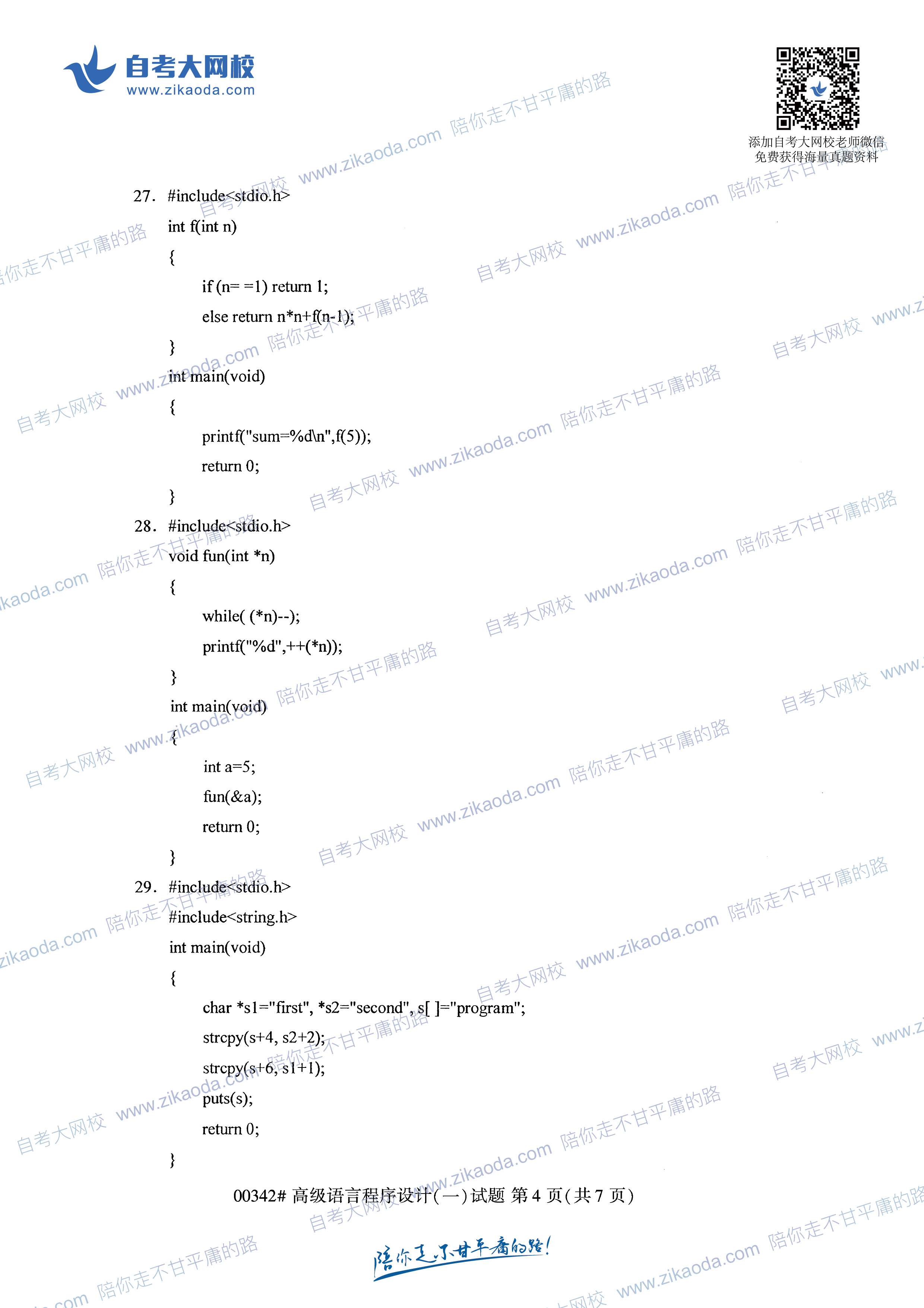 以上是關(guān)于全國(guó)2019年10月自考00342高級(jí)語(yǔ)言程序設(shè)計(jì)(一)真題試卷免費(fèi)下載!已公布的相關(guān)信息,請(qǐng)自考生們認(rèn)真查看,如果你想獲取最新的江蘇自考新聞或者江蘇自考問(wèn)題答疑,可以掃描江蘇自考網(wǎng)公眾號(hào)二維碼,我們會(huì)最第一時(shí)間內(nèi)為你解答。