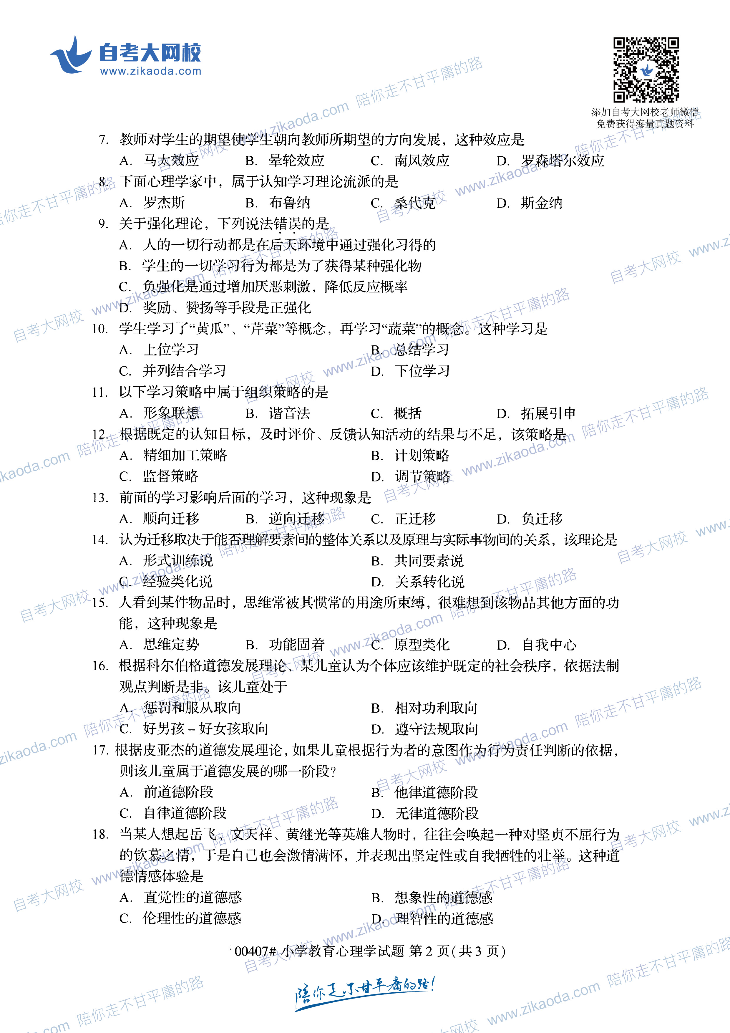以上是關(guān)于全國(guó)2019年10月自考00407小學(xué)教育心理學(xué)真題試卷免費(fèi)下載!已公布的相關(guān)信息,請(qǐng)自考生們認(rèn)真查看,如果你想獲取最新的江蘇自考新聞或者江蘇自考問題答疑,可以掃描江蘇自考網(wǎng)公眾號(hào)二維碼,我們會(huì)最第一時(shí)間內(nèi)為你解答。