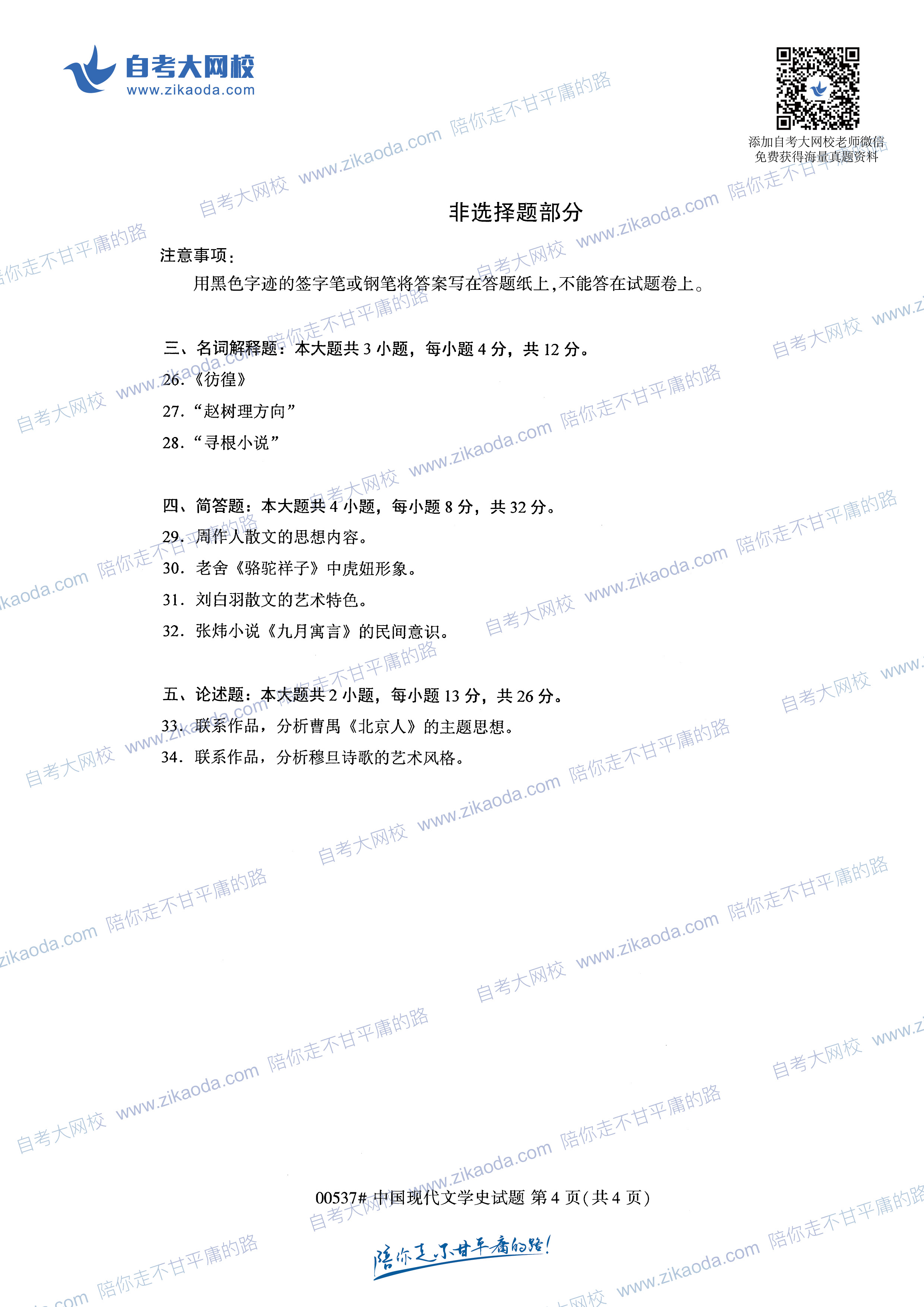 以上是關(guān)于全國(guó)2019年10月自考00537中國(guó)現(xiàn)代文學(xué)史真題試卷免費(fèi)下載!已公布的相關(guān)信息,請(qǐng)自考生們認(rèn)真查看,如果你想獲取最新的江蘇自考新聞或者江蘇自考問(wèn)題答疑,可以掃描江蘇自考網(wǎng)公眾號(hào)二維碼,我們會(huì)最第一時(shí)間內(nèi)為你解答。