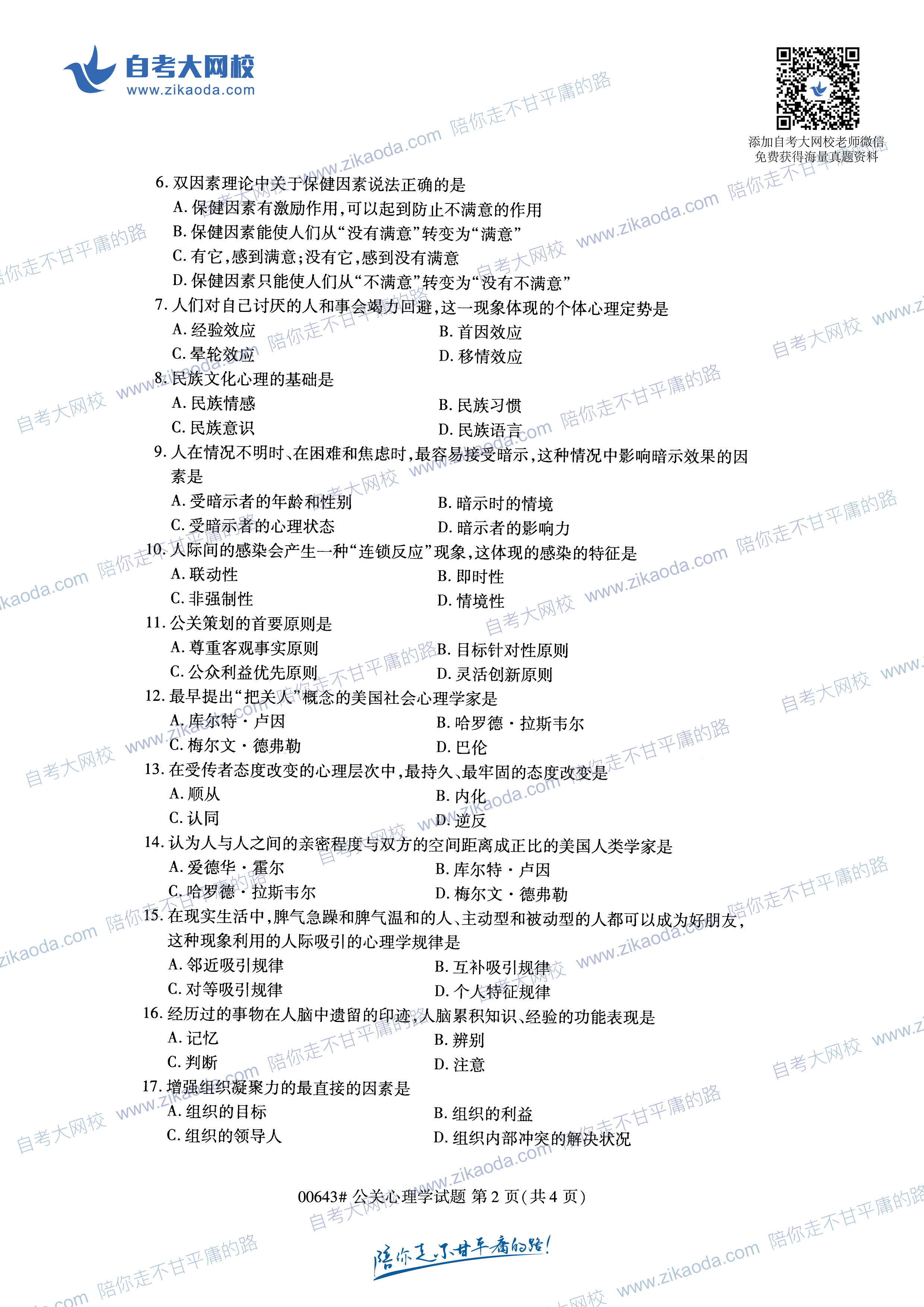 以上是關(guān)于全國(guó)2019年10月自考00643公關(guān)心理學(xué)真題試卷免費(fèi)下載!已公布的相關(guān)信息,請(qǐng)自考生們認(rèn)真查看,如果你想獲取最新的江蘇自考新聞或者江蘇自考問(wèn)題答疑,可以掃描江蘇自考網(wǎng)公眾號(hào)二維碼,我們會(huì)最第一時(shí)間內(nèi)為你解答。