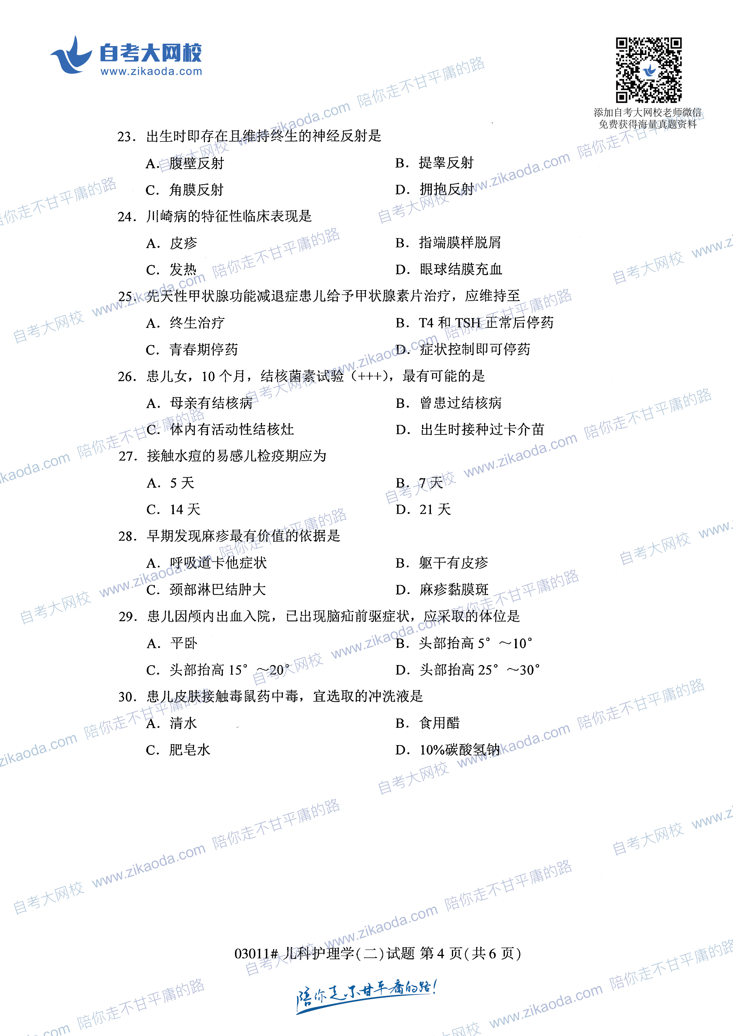以上是關(guān)于全國2019年10月自考03011兒科護理學(二)真題試卷免費下載!已公布的相關(guān)信息,請自考生們認真查看,如果你想獲取最新的江蘇自考新聞或者江蘇自考問題答疑,可以掃描江蘇自考網(wǎng)公眾號二維碼,我們會最第一時間內(nèi)為你解答。