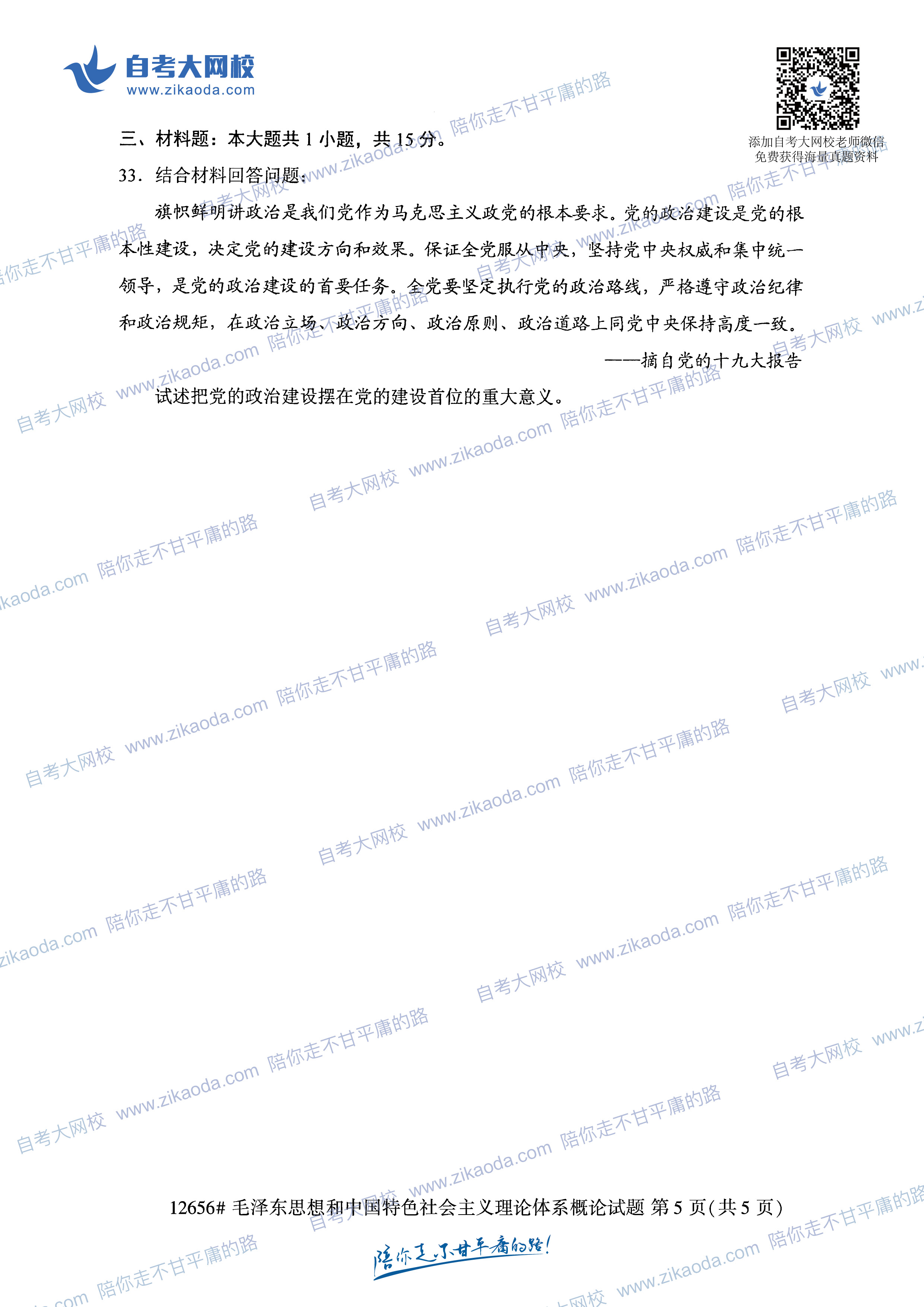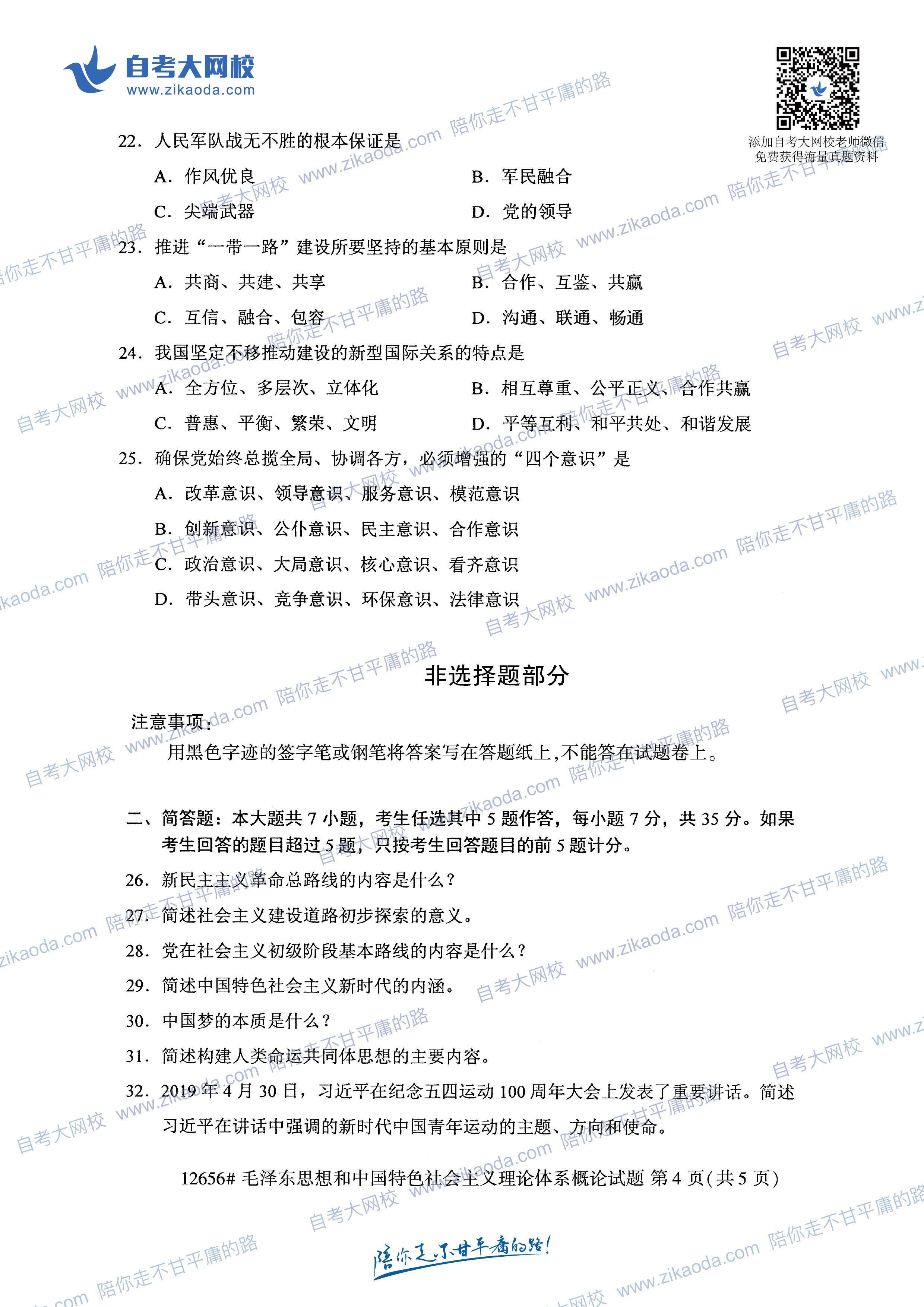 以上是關(guān)于全國(guó)2019年10月自考12656毛澤東思想和中國(guó)特色社會(huì)主義理論體系概論真題試卷免費(fèi)下載!已公布的相關(guān)信息,請(qǐng)自考生們認(rèn)真查看,如果你想獲取最新的江蘇自考新聞或者江蘇自考問題答疑,可以掃描江蘇自考網(wǎng)公眾號(hào)二維碼,我們會(huì)最第一時(shí)間內(nèi)為你解答。